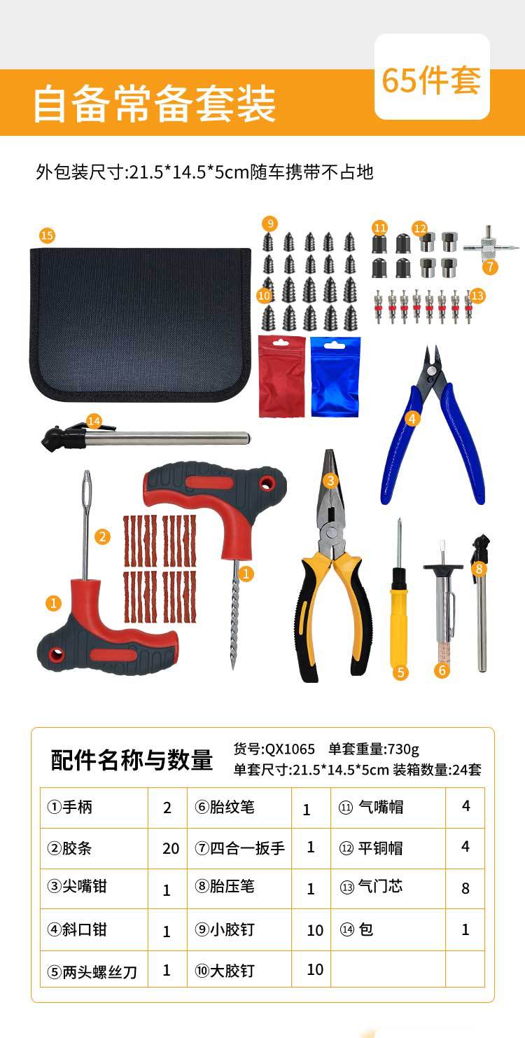 跨境热销65pc新款补胎工具手柄应急补胎套装包汽车摩托车自驾必备