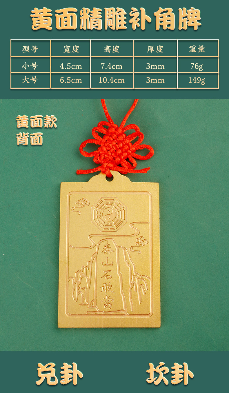 颜色 黄面精雕补角牌-小号,黄面精雕补角牌-大号,描红精雕补角牌
