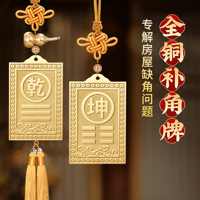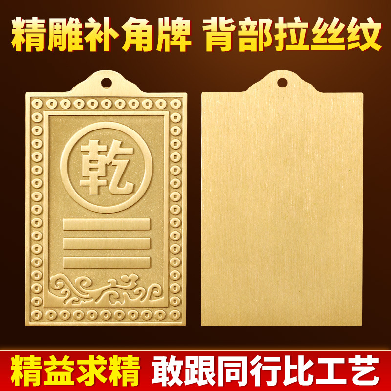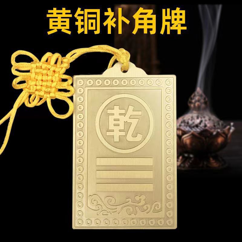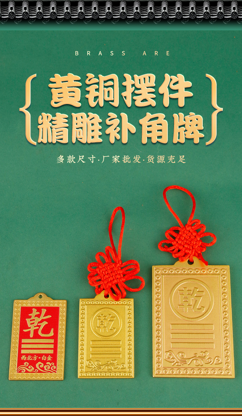 批发黄铜制乾卦牌彩绘房屋缺角西北角摆件不方正缺角挂件铜补角牌