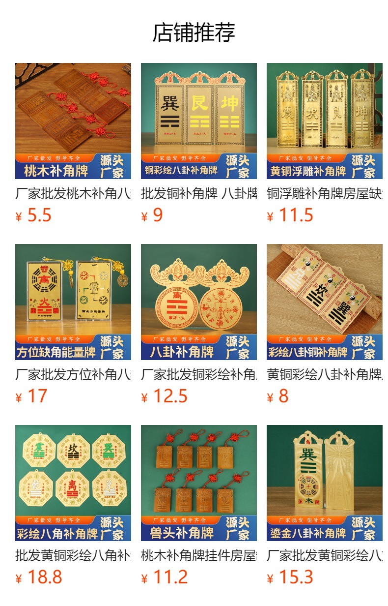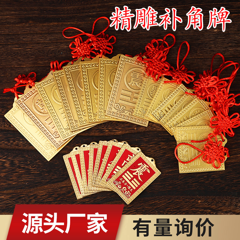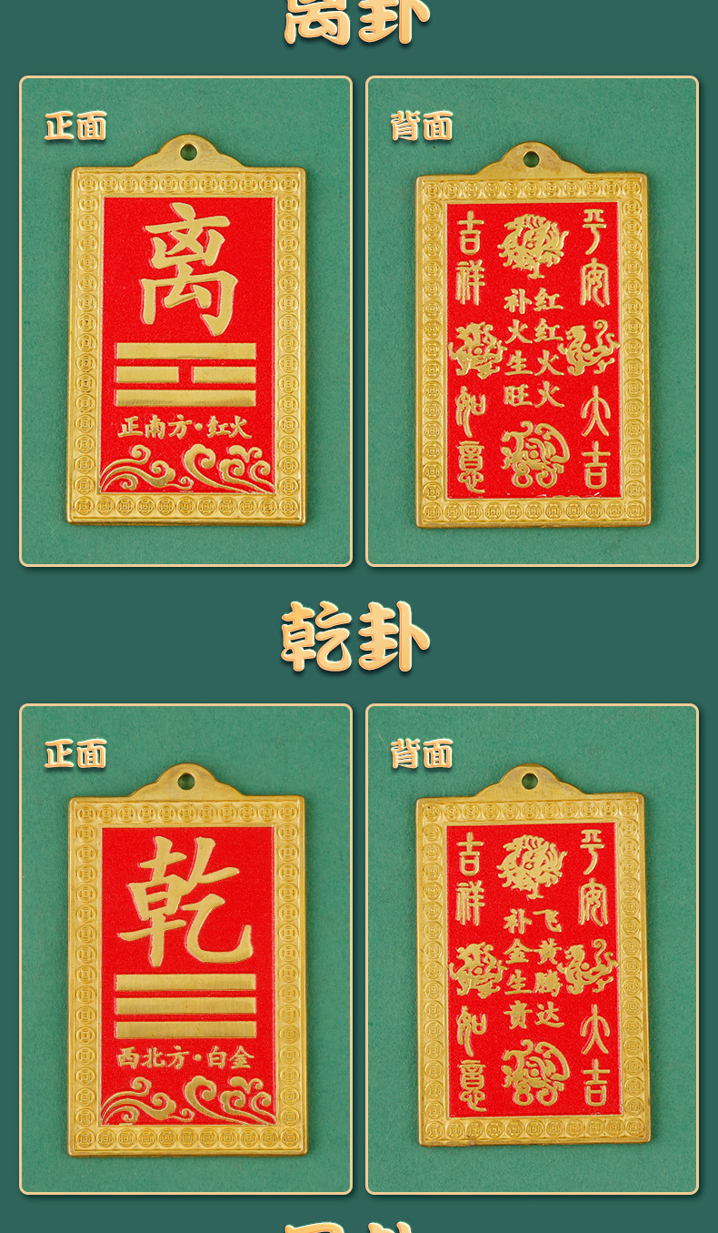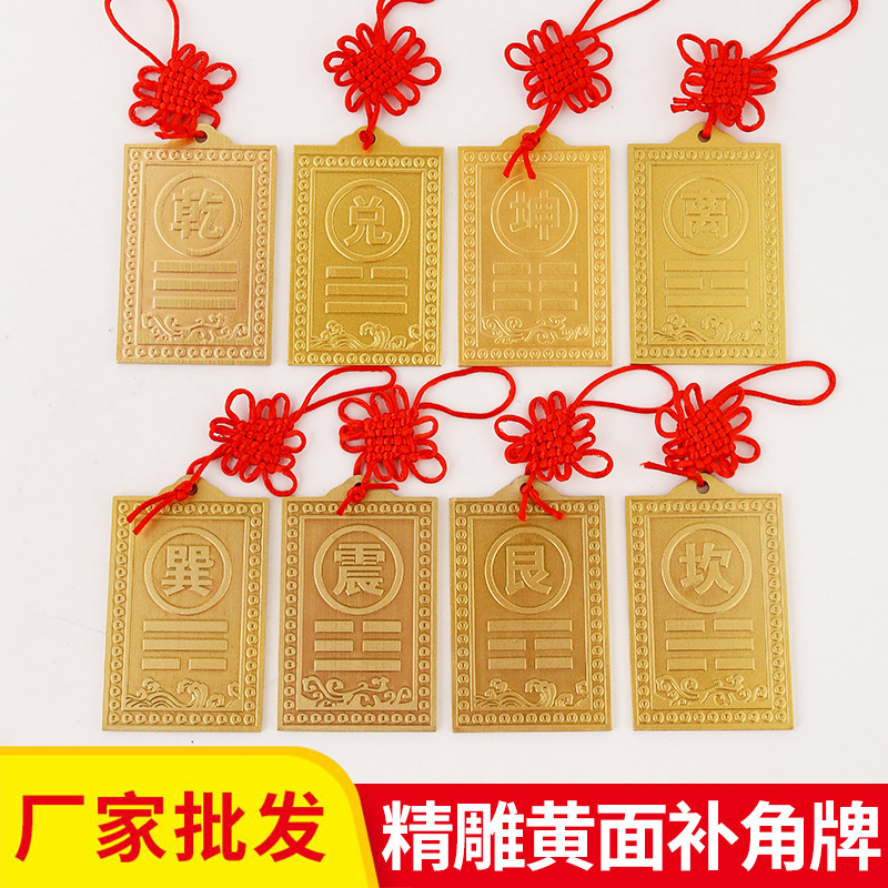 批发黄铜制乾卦牌彩绘房屋缺角西北角摆件不方正缺角挂件铜补角牌