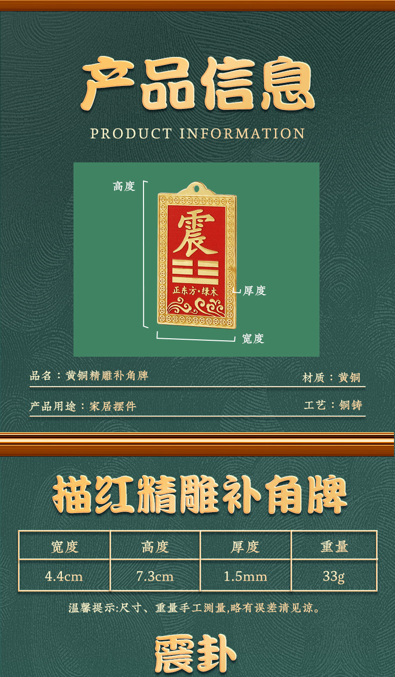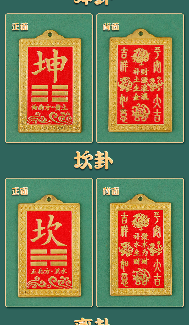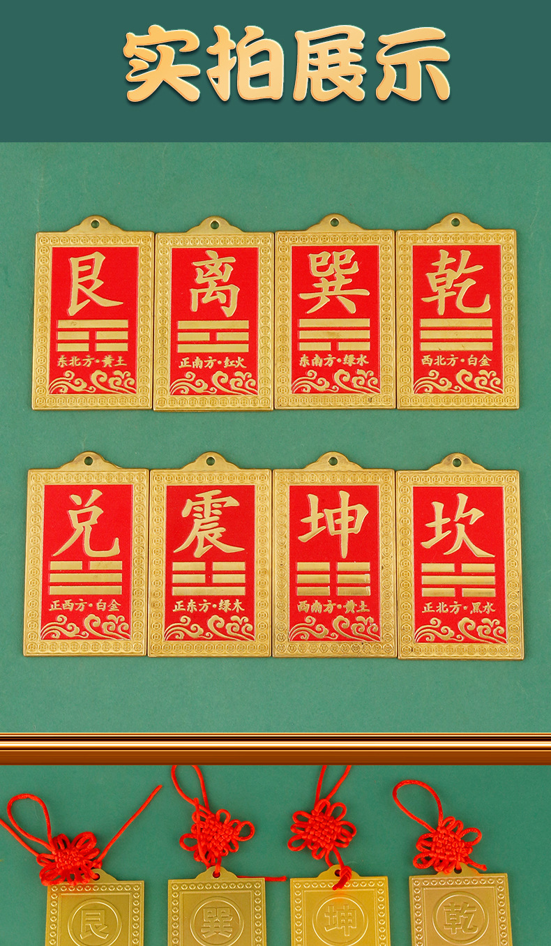 黄铜补角牌房屋缺角乾卦财位铜牌八卦风水牌震巽离坤兑乾坎艮卦
