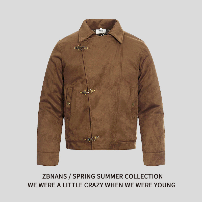 美式复古飞机扣麂皮绒夹棉夹克男女秋冬痞帅外套情侣潮棉衣外套