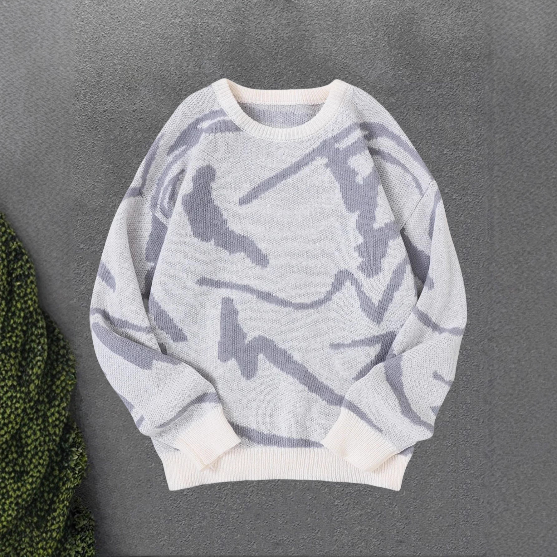 跨境temu希音亚马逊潮流毛衣男女秋冬宽松提花圆领港风针织衫长袖