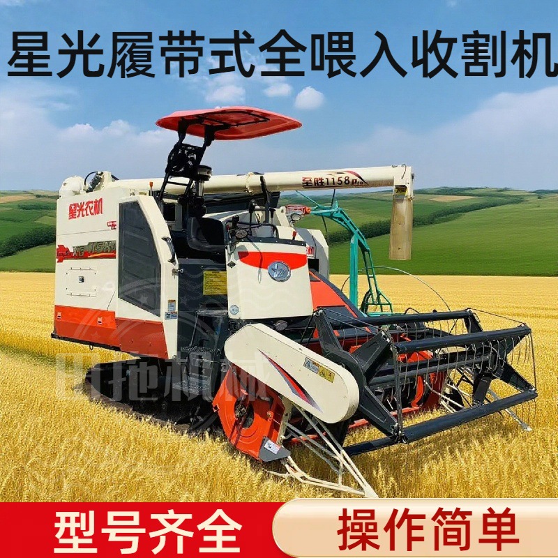 星光履带式全喂入联合收割机小麦水稻农用大型脱粒筛选一体收割机