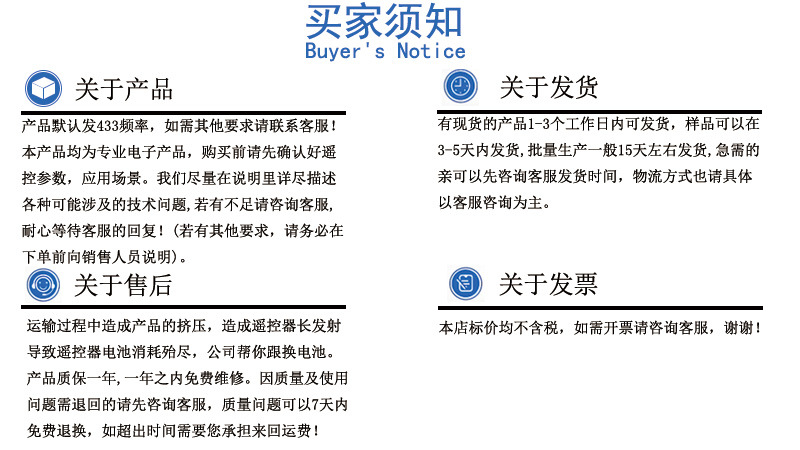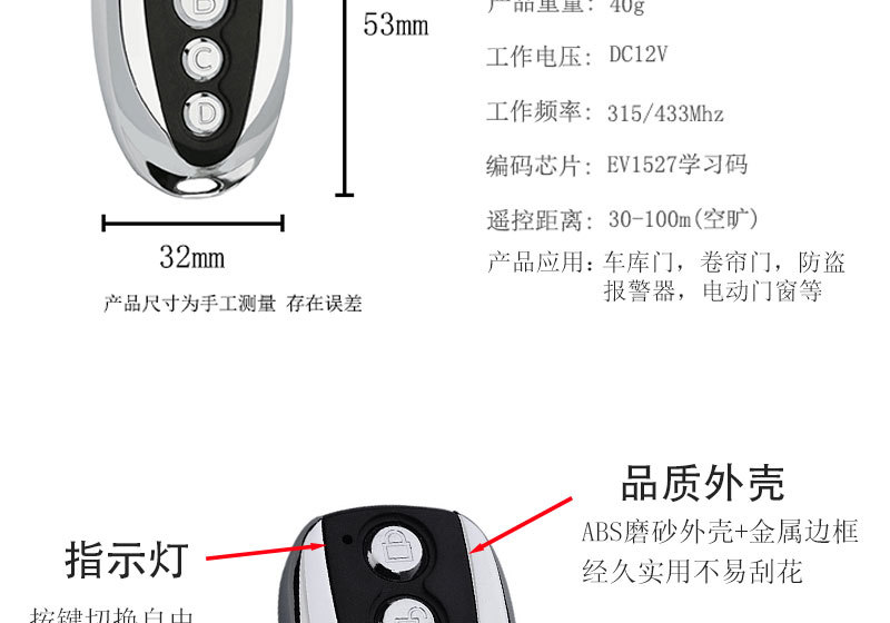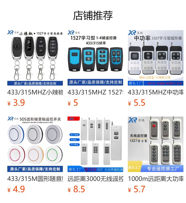 温馨提示:此款默认发1527学习型,不是拷贝复制款!不能对拷原遥控器,如需拷贝款或其他请联系客服!谢谢