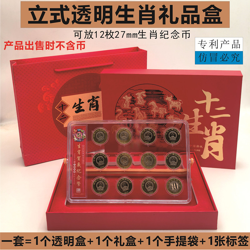 二輪特大角箱十二生肖記念貨幣大セット位置決め箱27mmコイン箱龍年収蔵箱