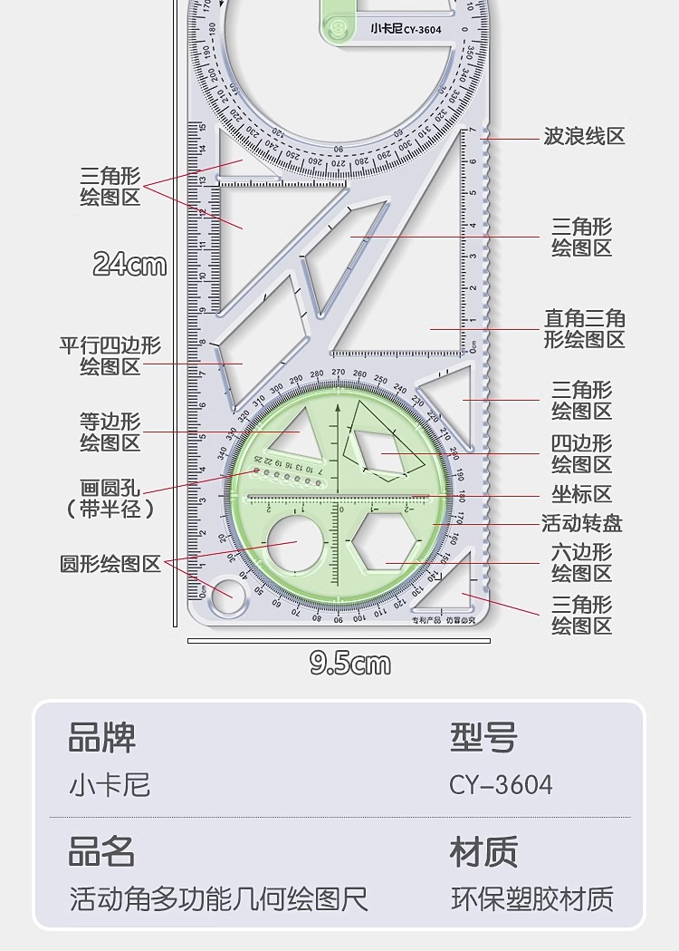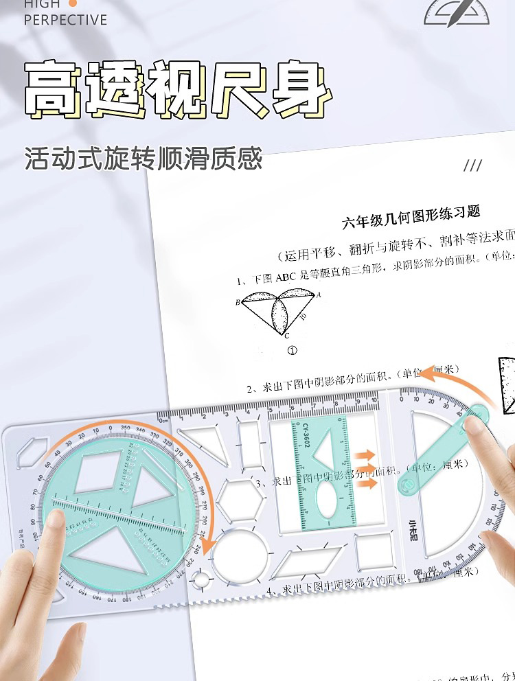 活動式画定規小学校数学多機能図定規学生幾何関数図形テンプレート卸売り