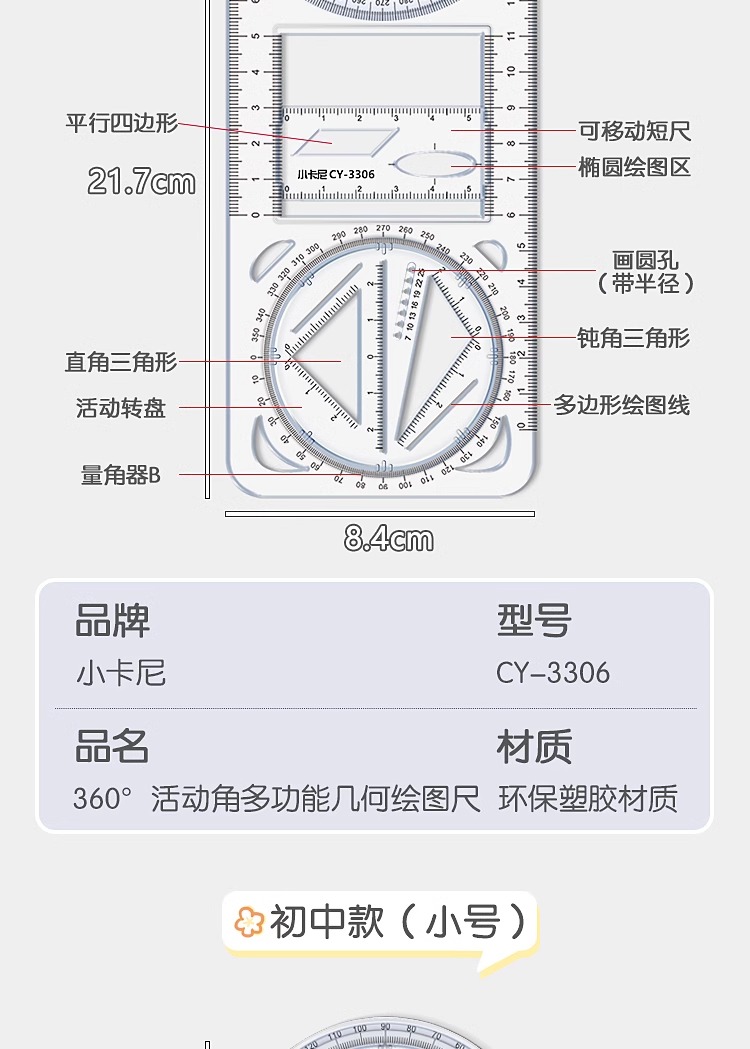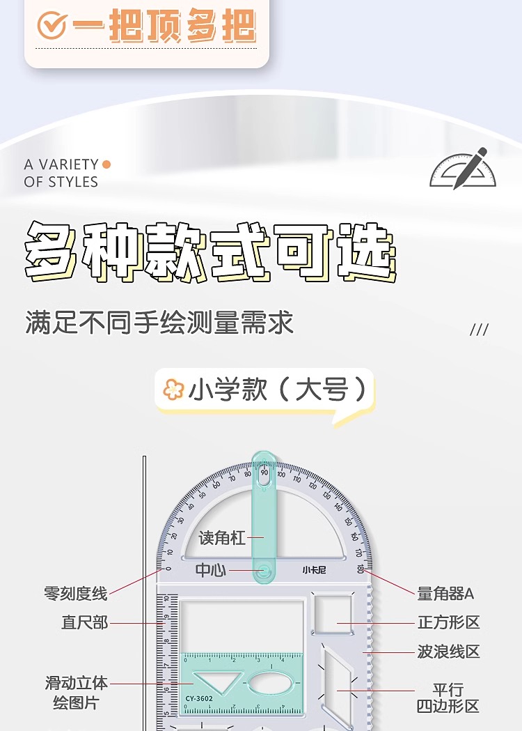 颜色 【小学】升级180°-透明,【小学】经典-透明,【小学】升级-透明,【特价】多功能几何绘图尺1把,【全套5把】高中多功能尺4把+送制图尺,【初中】升级-透明,【初中】升级360°-透明,【初高】升级-透明(不可旋转),【初高】经典-透明,【高中】新升级-透明,【升级1把】3306多功能几何绘图尺,【热卖4把】初中多功能尺3把+送函数尺,【全套5把】小学多功能尺4把+送制图尺,【初中7把装】升级1把+初中6个四方尺+说明书,【热卖4把】高中多功能尺3把+送函数尺,【升级全套6把】送函数尺1把,【高中绘图套装】升级2把+自动铅笔,【热卖4把】小学多功能尺3把+送函数尺,【手抄报推荐】升级3把+手抄报模板尺14把,【全套5把】初中多功能尺4把+送制图尺,【初高款】犀牛款/不可旋转