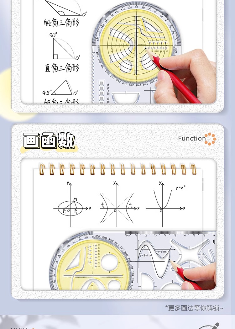 中小学生多功能尺子高中数学函数几何绘图尺抛物线三角量角器直尺