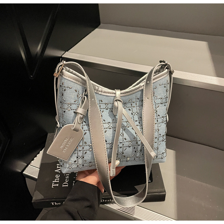 新しい女性のバッグ韓国スタイルカジュアルデニムショルダーハンドバッグファッションホットダイヤモンド外国スタイル脇の下バッグ卸売