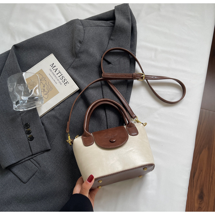 跨境流行女包新款简约复古包盖水桶包百搭高品质通勤包包斜挎包女