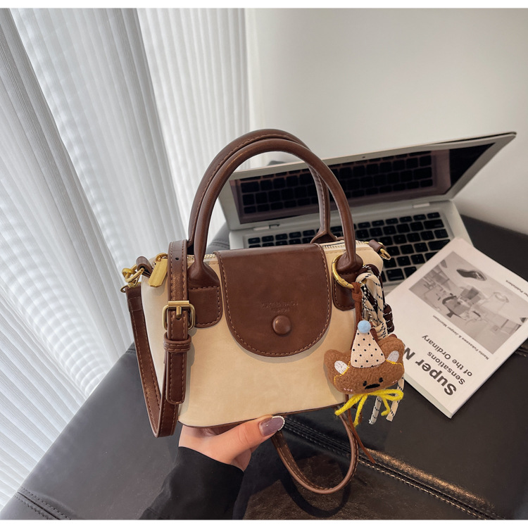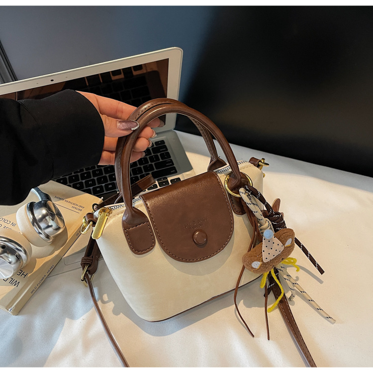 超火复古鹿皮绒手提包包女2025新款秋季百搭单肩多功能斜挎手提包