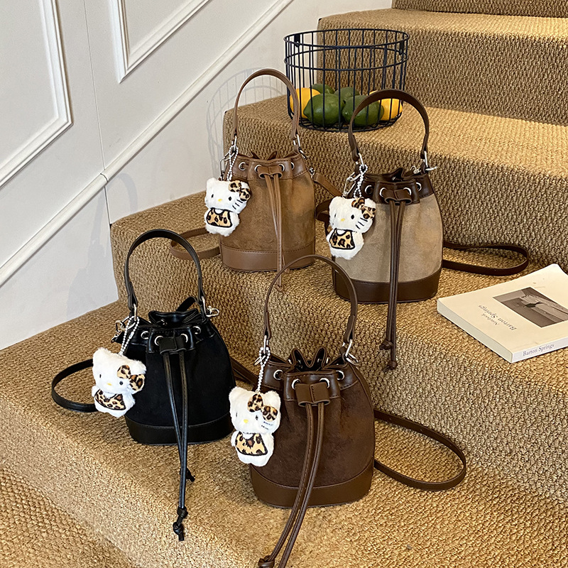 秋冬流行麂皮小包包女2025新款时尚磨砂抽绳水桶包复古质感斜挎包