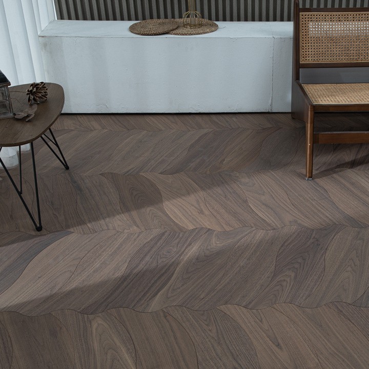 黑胡桃大树叶地板,高端实木复合地板, 高强度、防滑、耐用