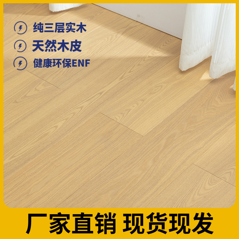 新三層実木床現代原木風家庭用三層実木皮面実木面新三層実木床