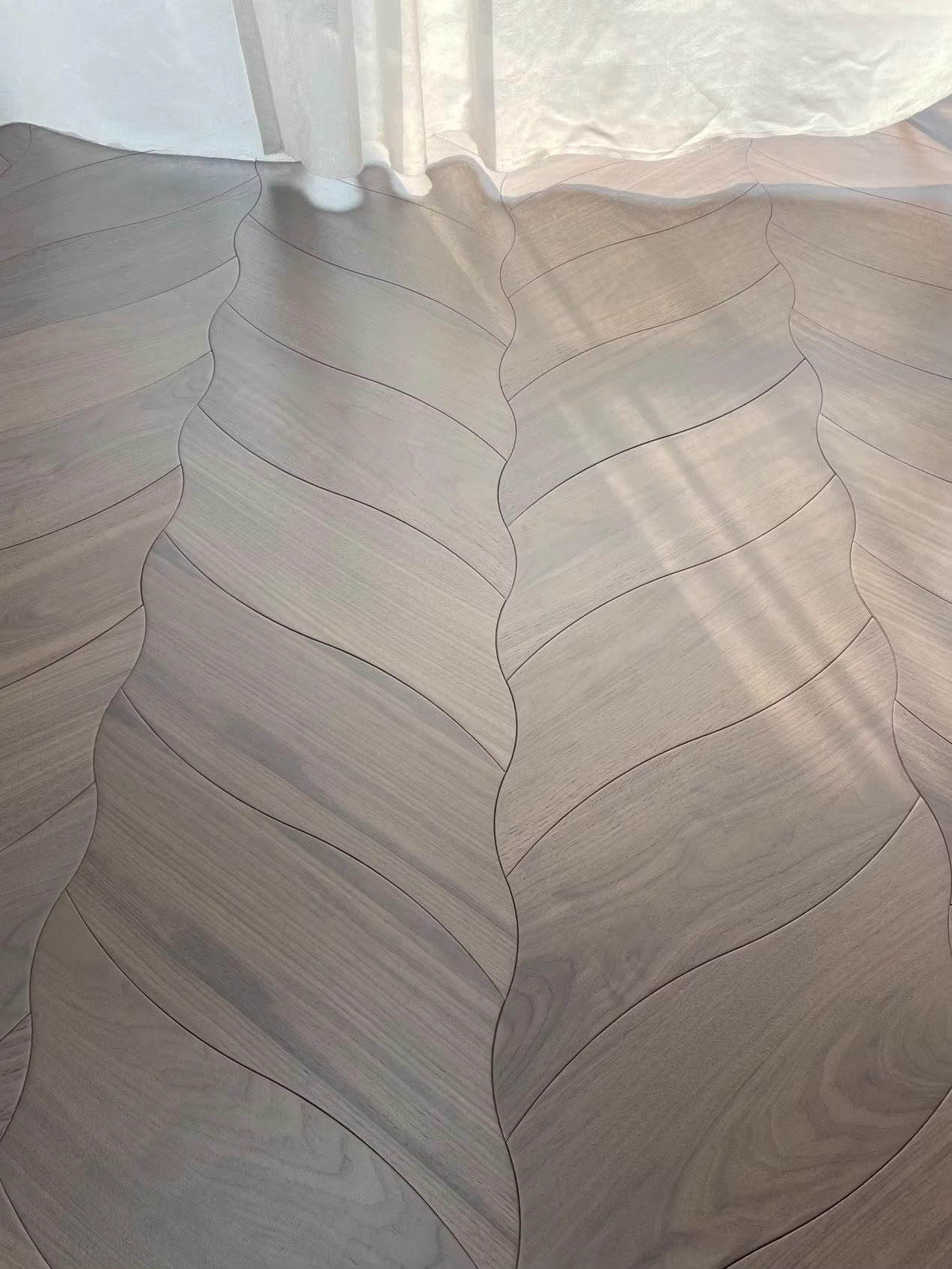 异型黑胡桃柳树叶异形拼花地板全桦基材大树叶拼花地板工厂直销