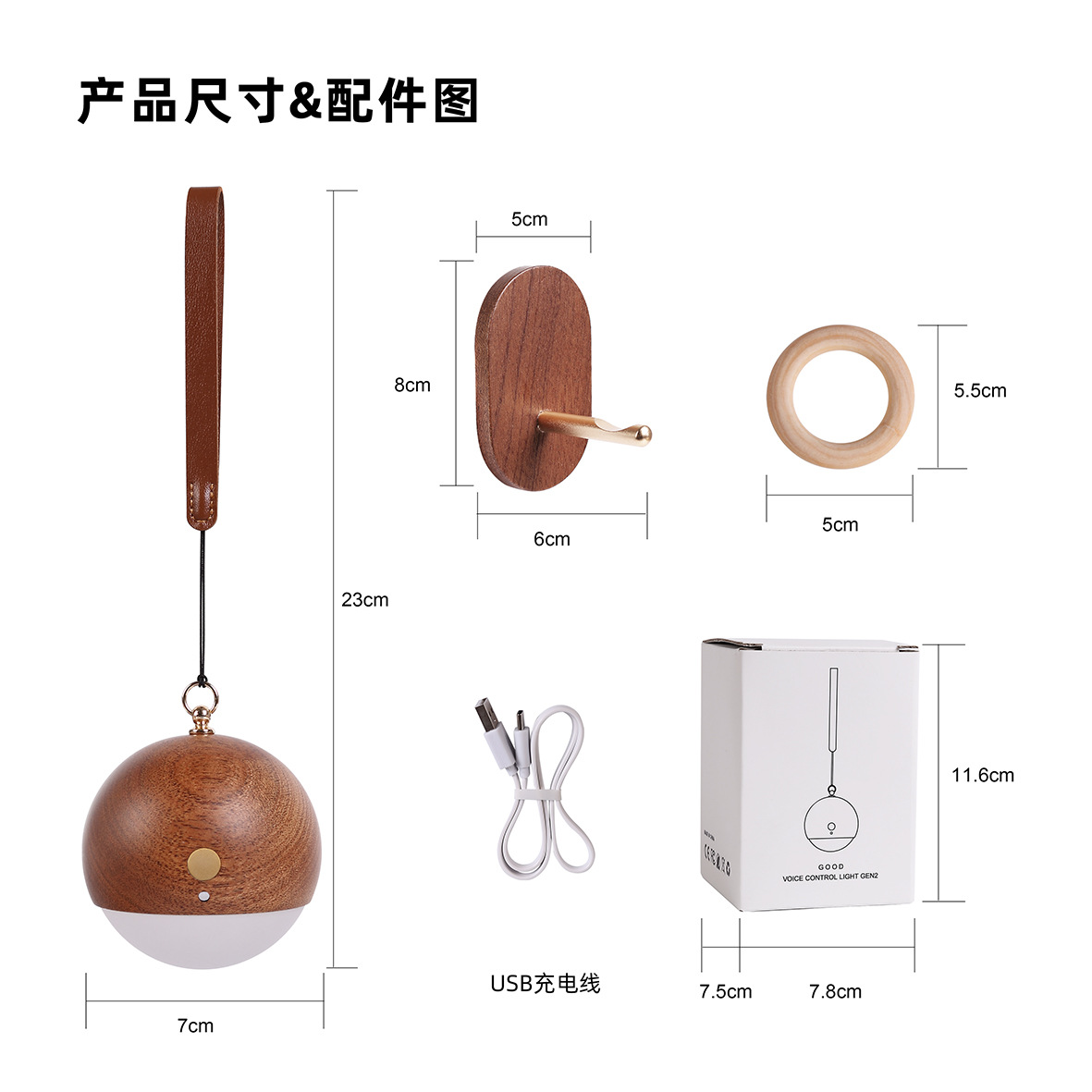 产品标配:灯x1、支架x1、底座x1、充电线x1