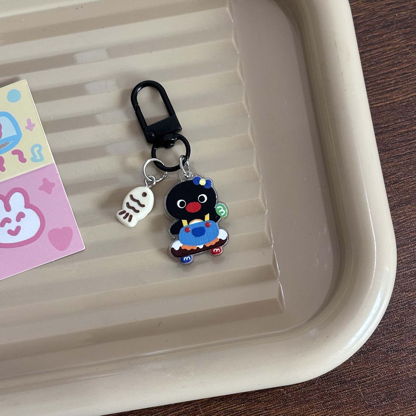 Pingu企鹅小鱼钥匙扣亚克力双面挂件可爱卡通包包挂件闺蜜礼物