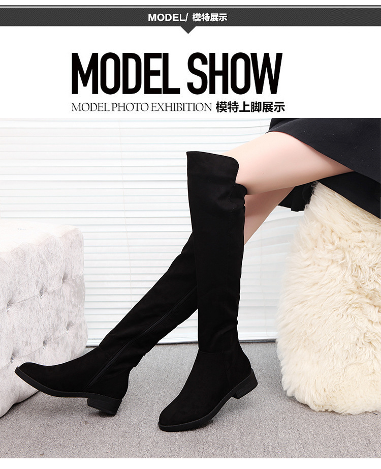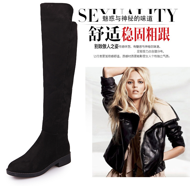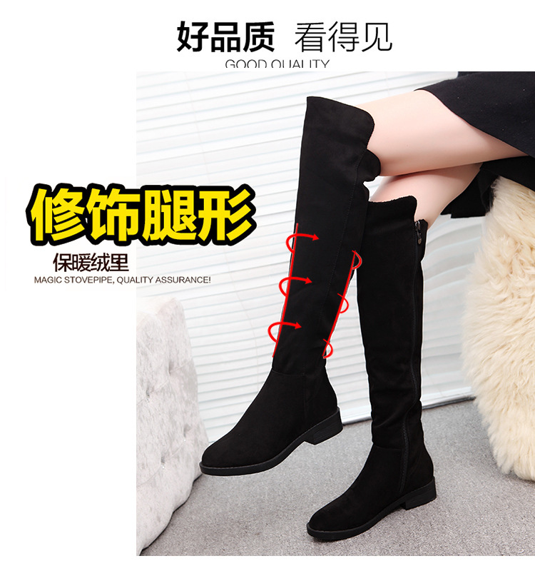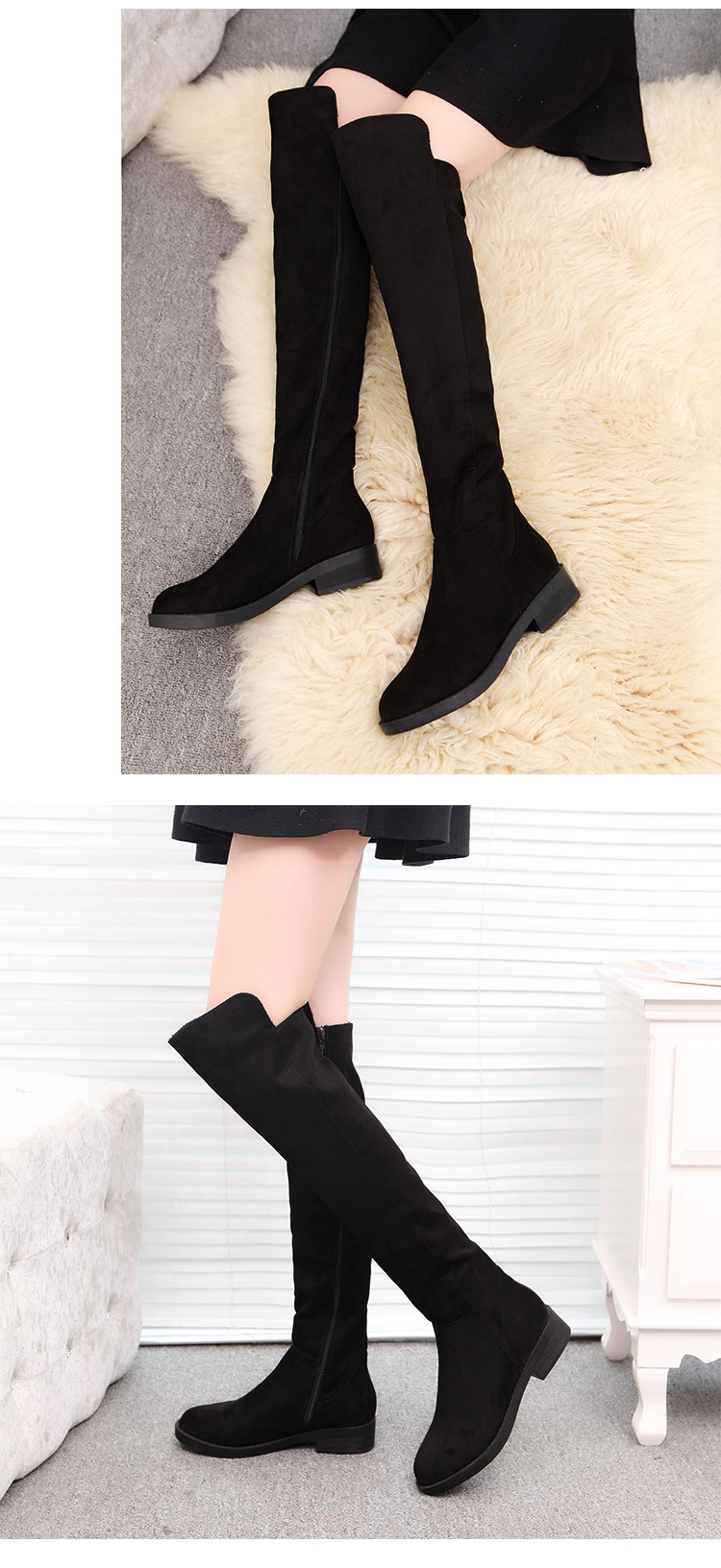 欧美长筒过膝靴女长靴低跟侧拉链高筒女靴平底显瘦加绒高筒靴批发