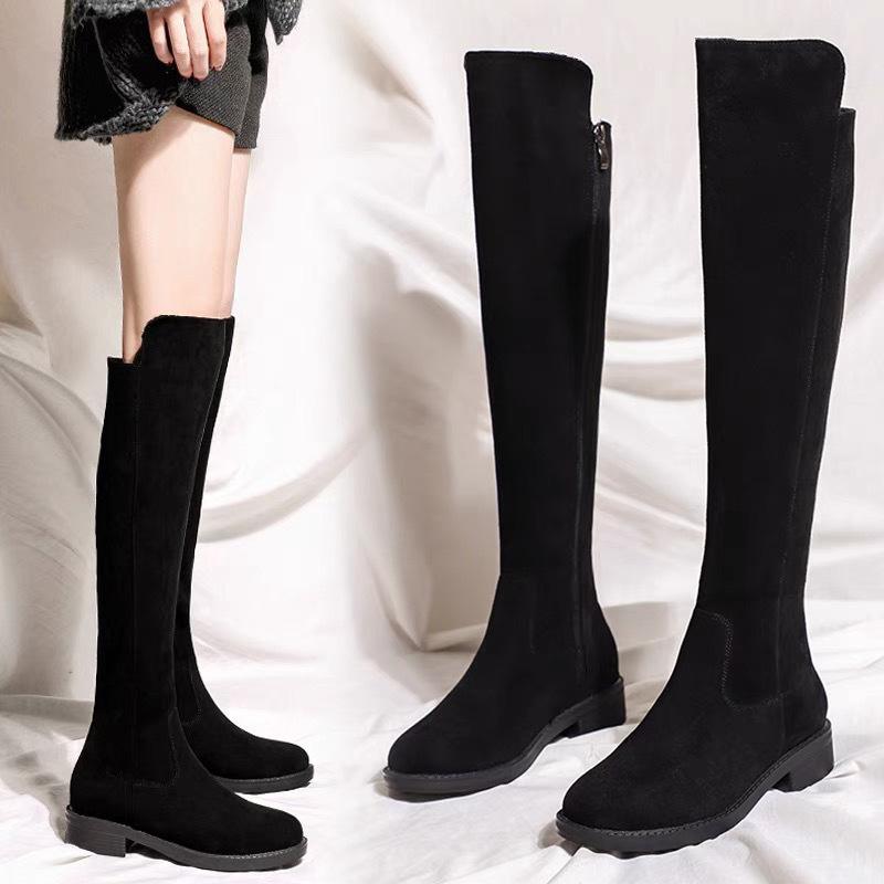 Zブーツ2025新型フラット膝を越えた騎士ブーツ秋冬弾力ブーツファスナー長靴ベルベット