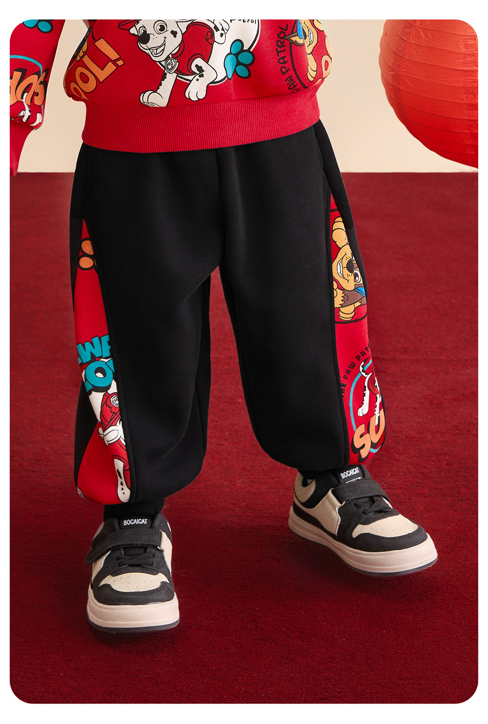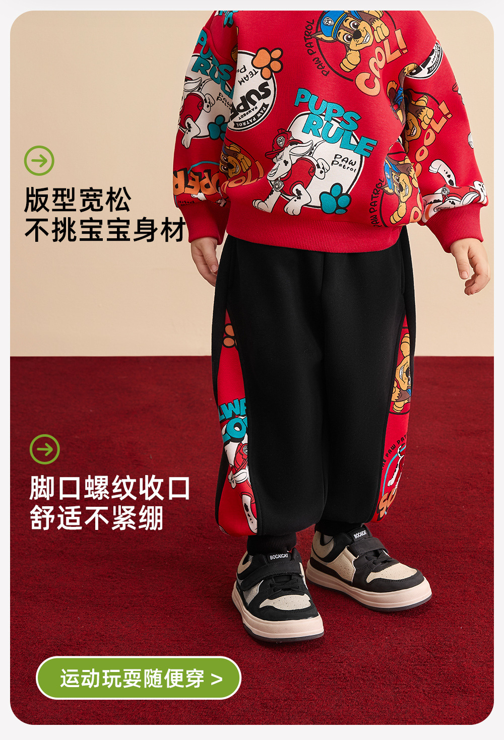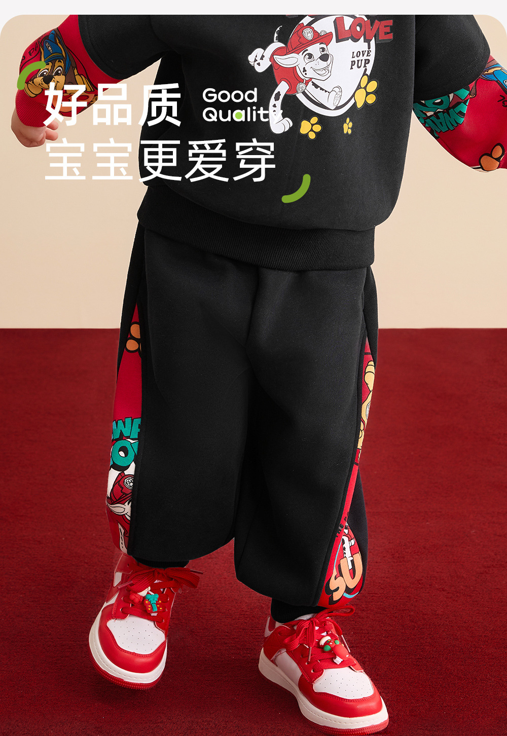 汪汪队儿童加绒裤子宝宝拜年服男孩冬装运动休闲裤秋冬新款年服裤