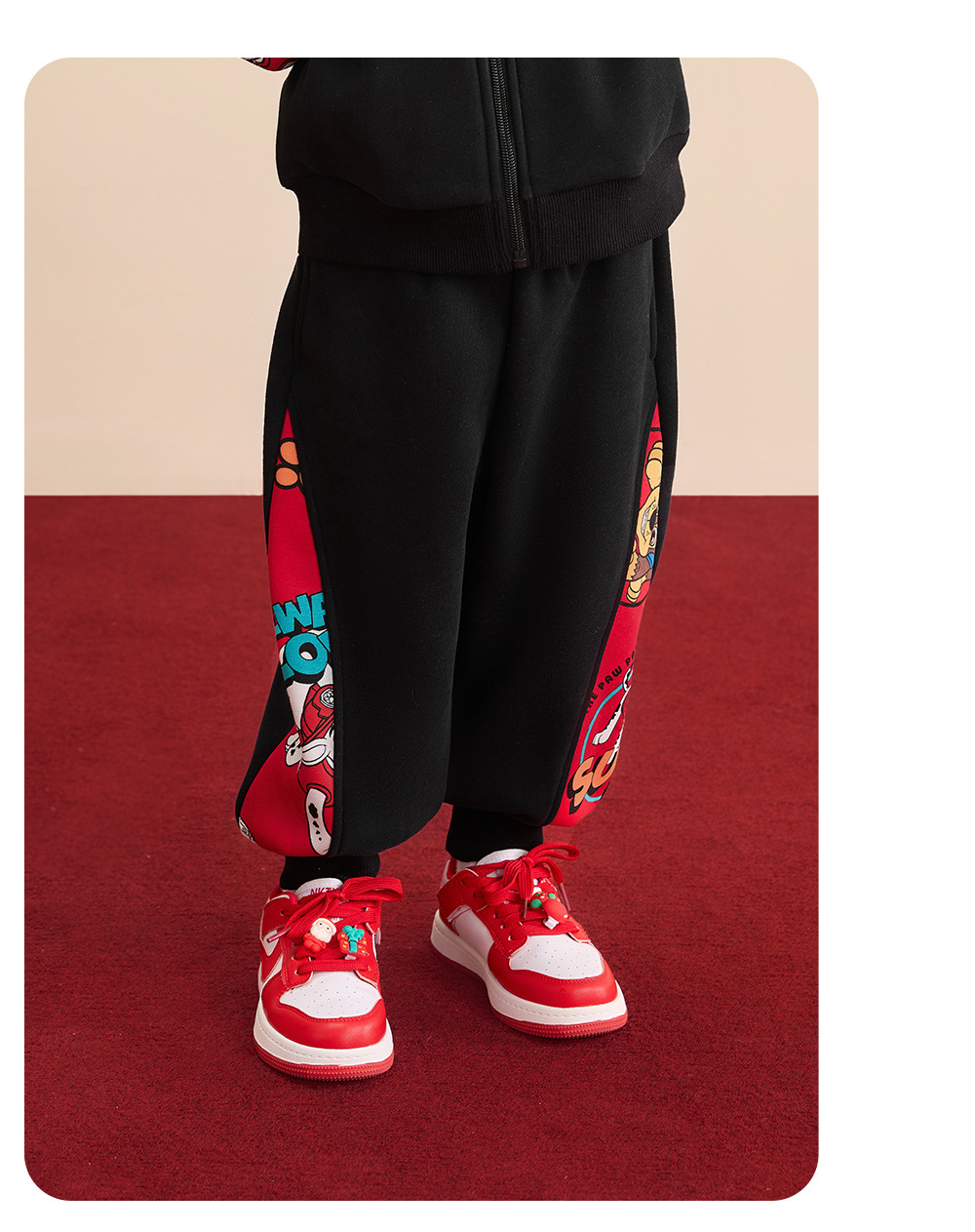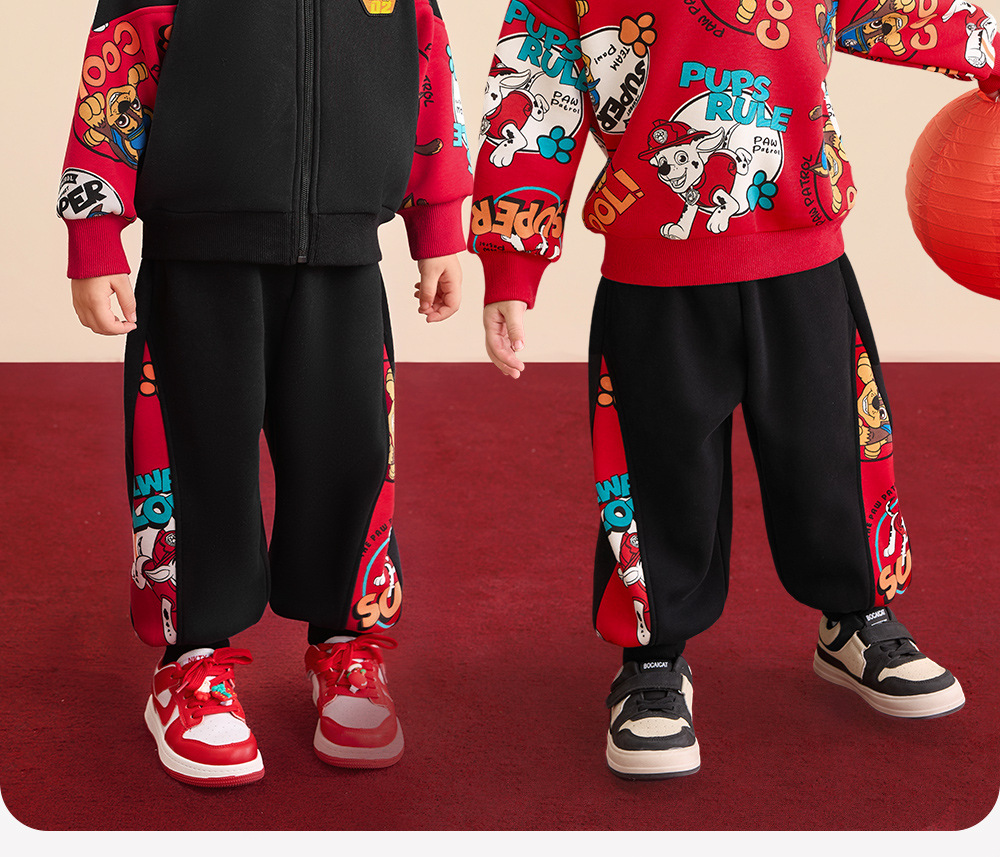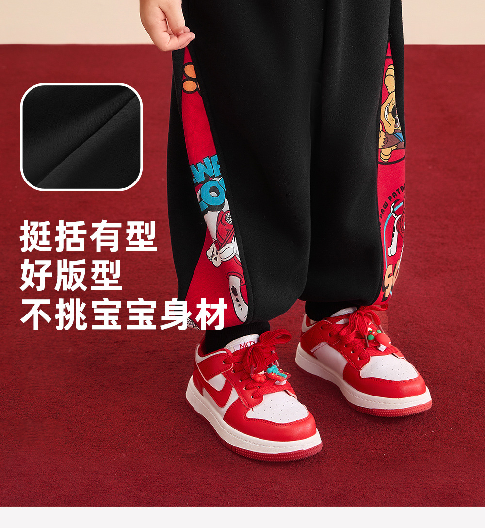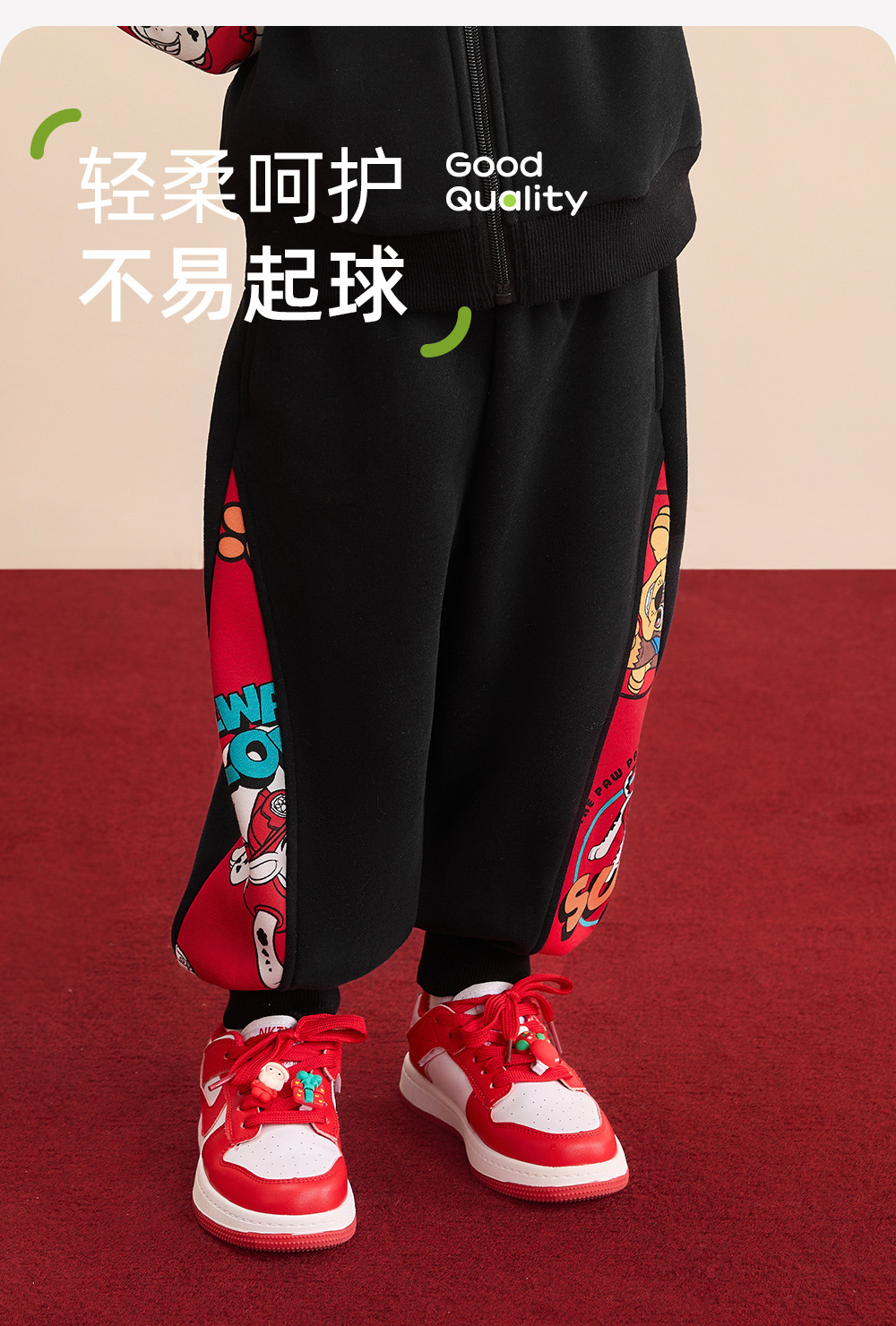 汪汪队儿童加绒裤子宝宝拜年服男孩冬装运动休闲裤秋冬新款年服裤