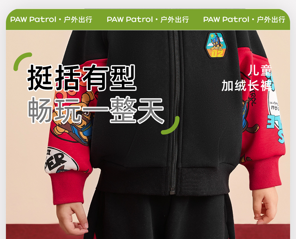 汪汪队儿童加绒棒球服外套宝宝红色年服上衣秋冬款男孩圣诞新年服
