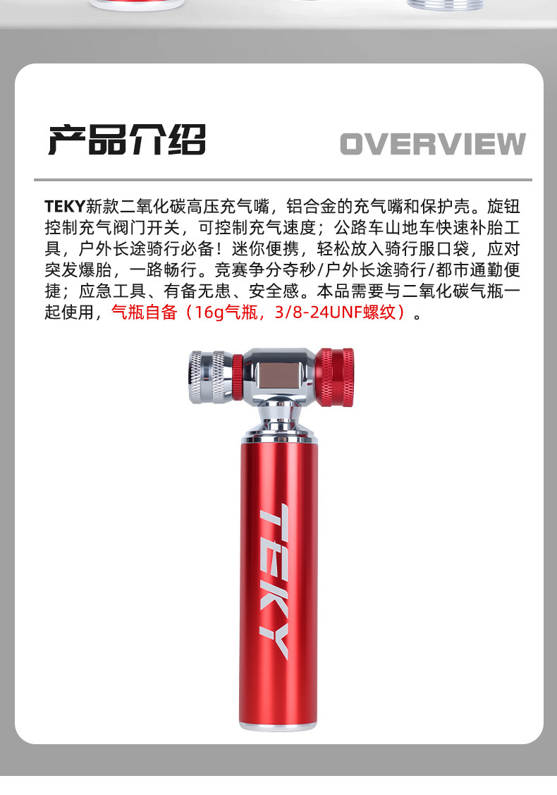 规格 COP1-PRO快速充气嘴(不含气瓶)-银红色,COP1-PRO快速充气嘴(不含气瓶)-黑红色