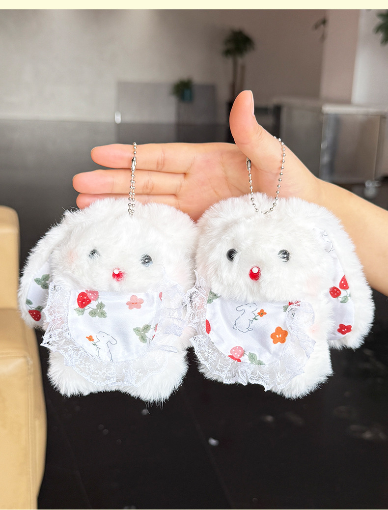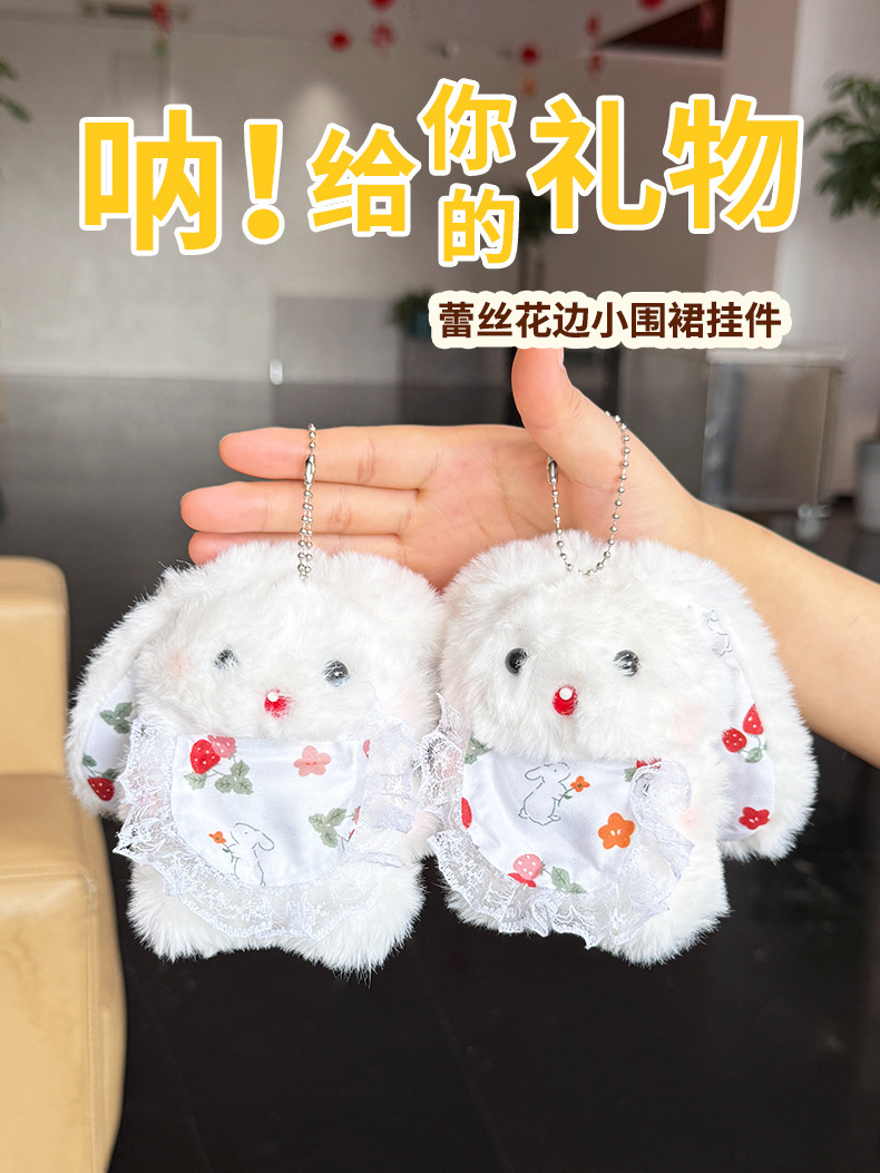 创意可爱毛绒小围裙兔玩偶挂件吱吱叫长耳兔公仔钥匙扣包包挂装饰