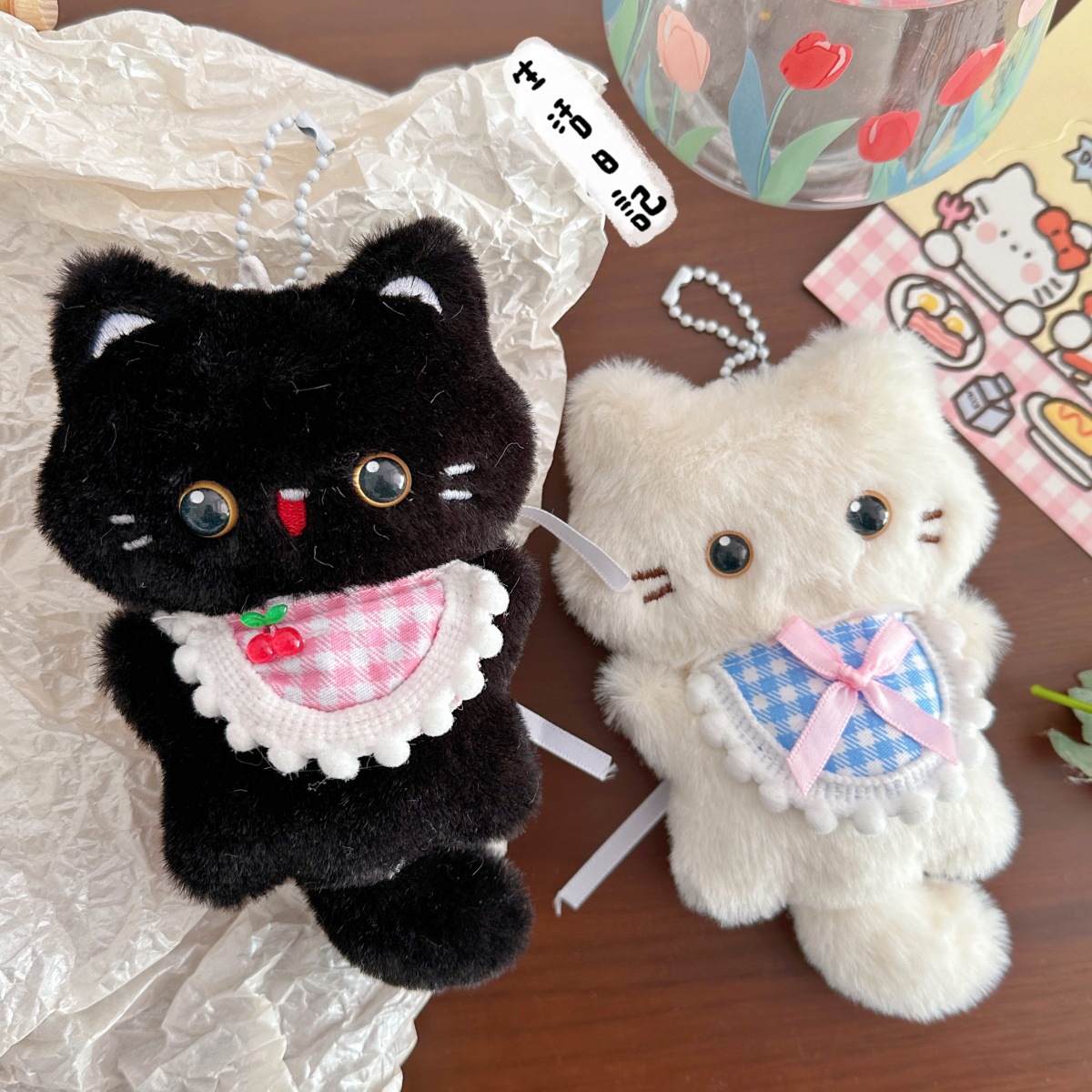 可爱毛绒小猫吱吱叫围兜挂件少女背包钥匙扣玩偶挂坠情侣礼物挂饰