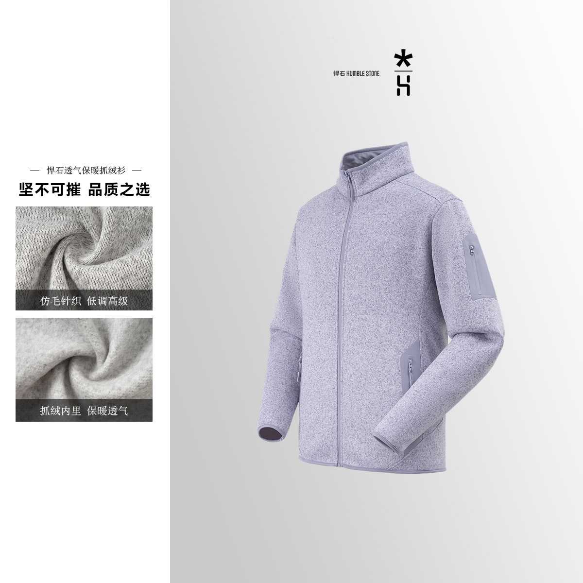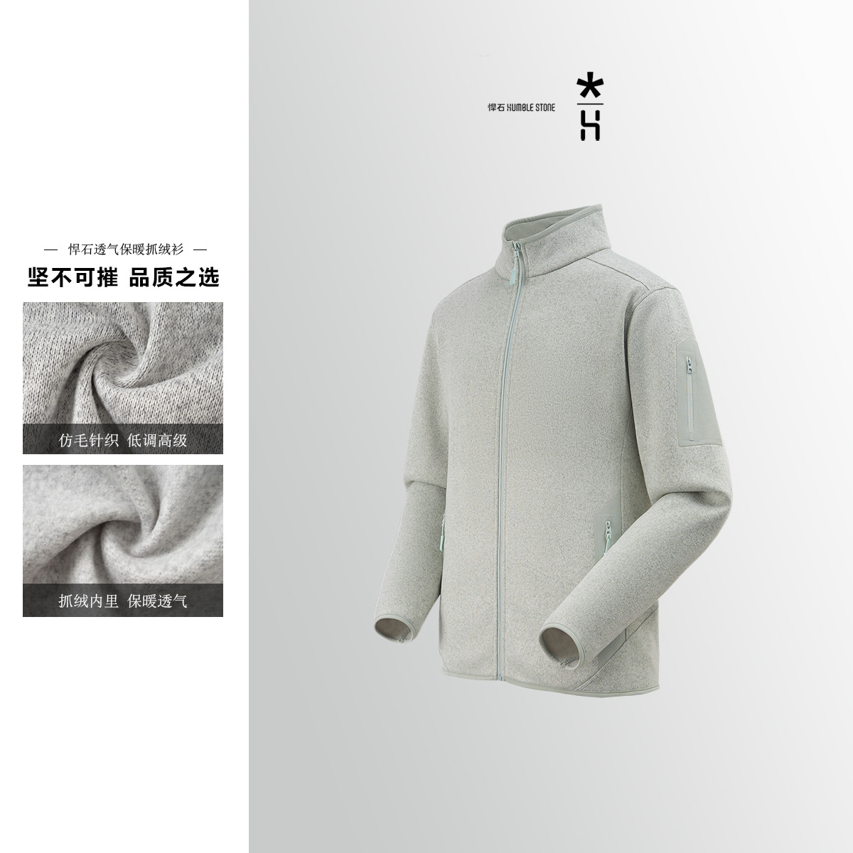 户外抓绒衣男女同款 秋冬加绒立领外套打底针织开衫情侣运动夹克
