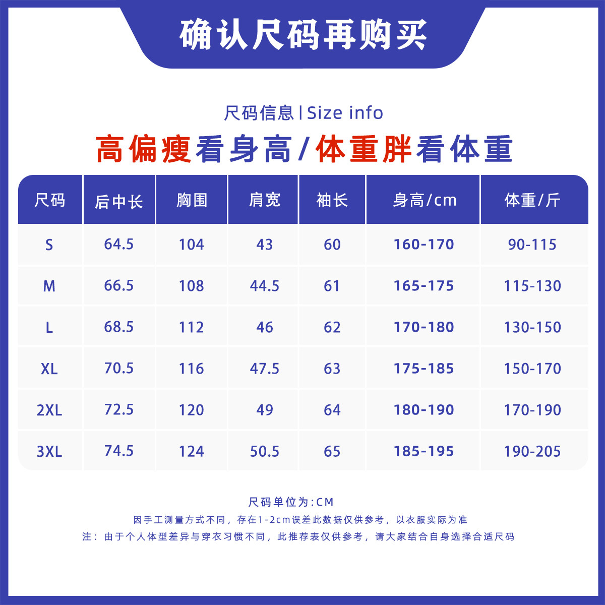 尺码 S,M,L,XL,XXL,3XL
