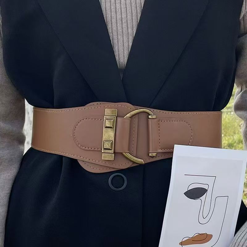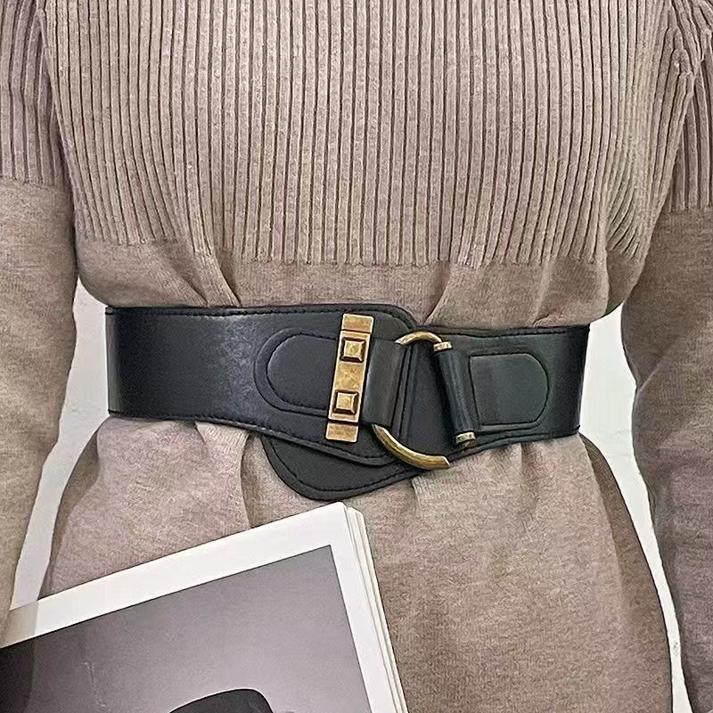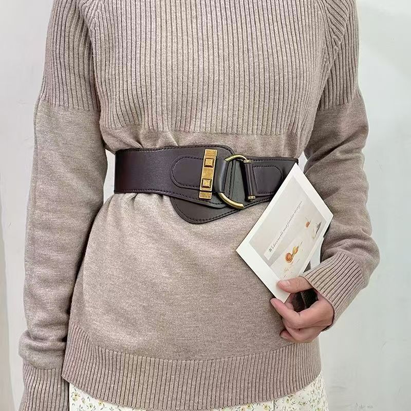 女性用装飾弾性ウエストベルト、セーター、ワンピース、スカート、ウエストを細くする伸縮性のある細いウエストベルト、女性用レトロスタイルのウエストバンド