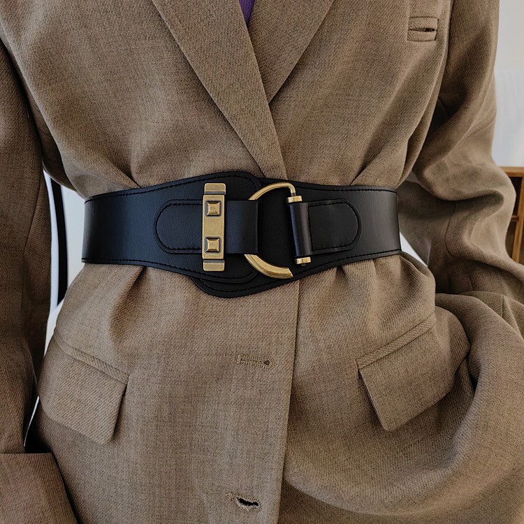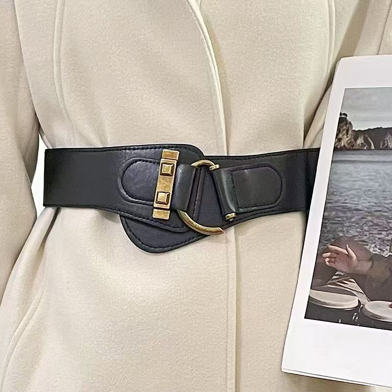 高级感宽腰带女装饰时尚弹力黑色女士腰封配时装ins配饰外搭大衣