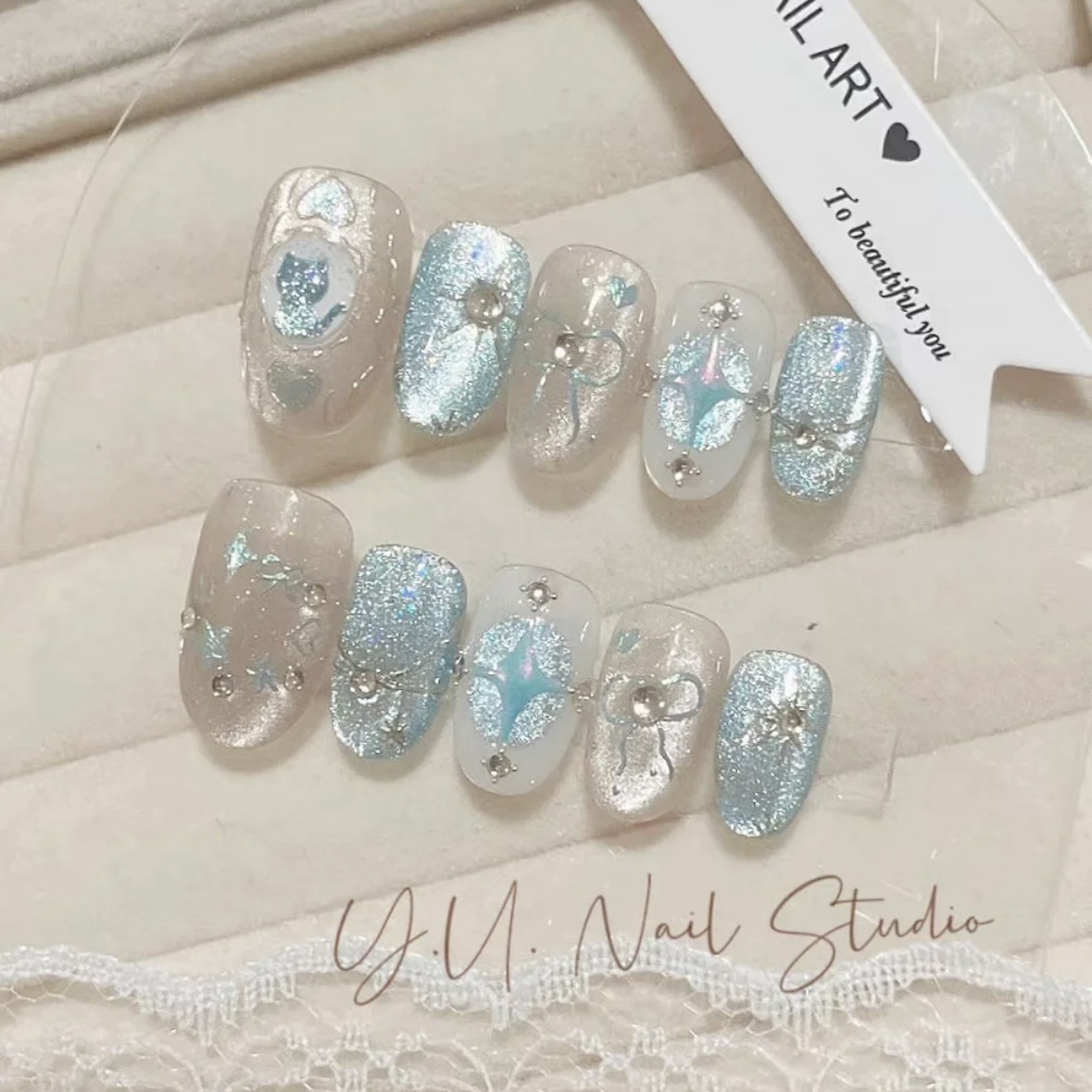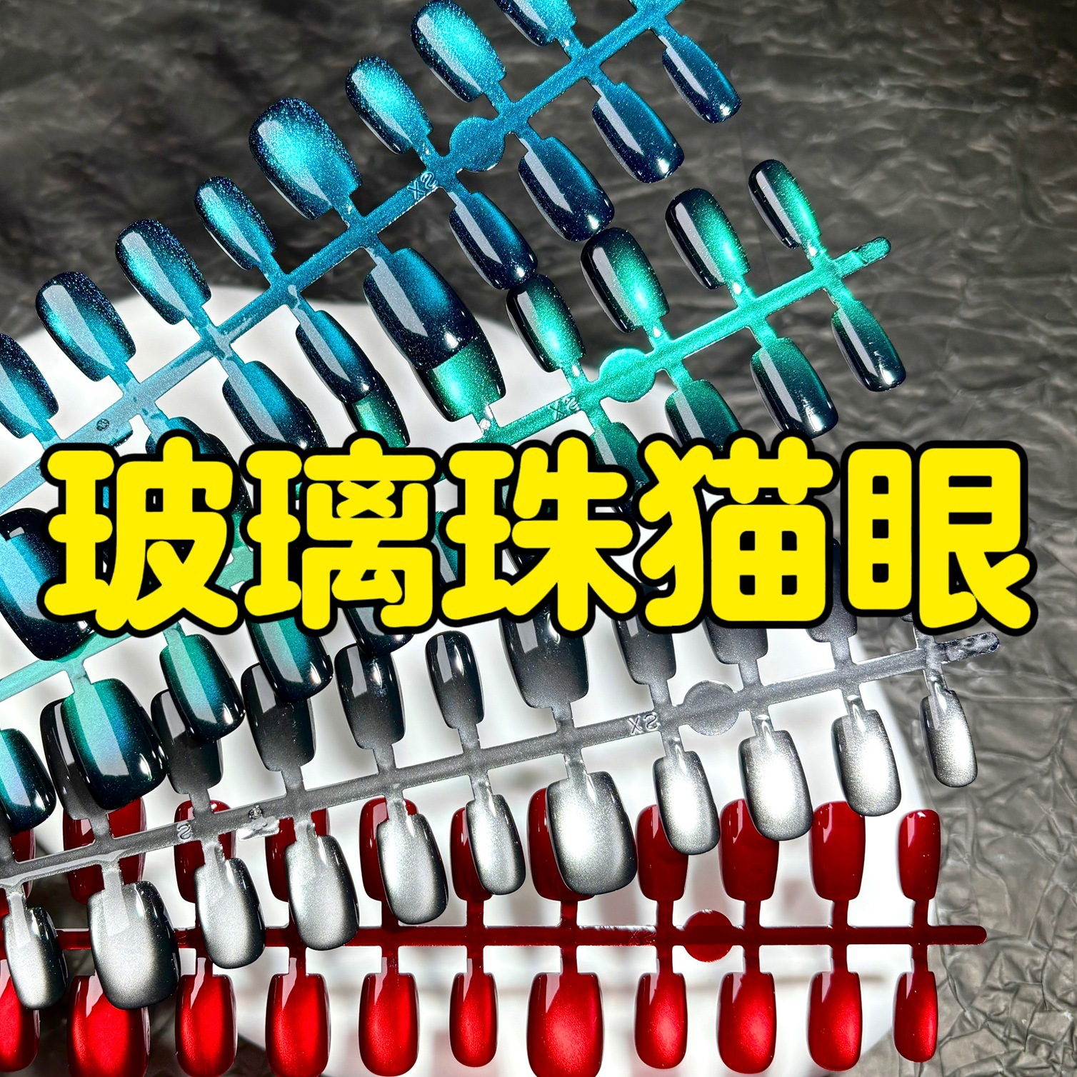 跨境热销短短杏仁高品质猫眼穿戴甲爆闪3D滴胶立体外贸美甲贴片