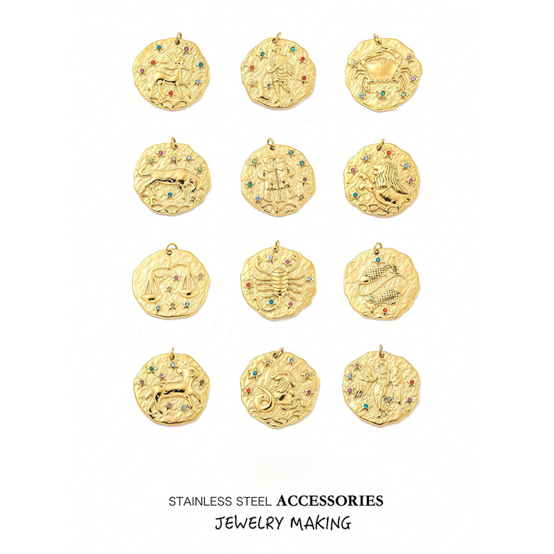 ヨーロッパとアメリカのレトロなステンレス鋼の 12 星座カラフルなジルコンペンダント diy ペンダントイヤリングネックレスジュエリーペンダント