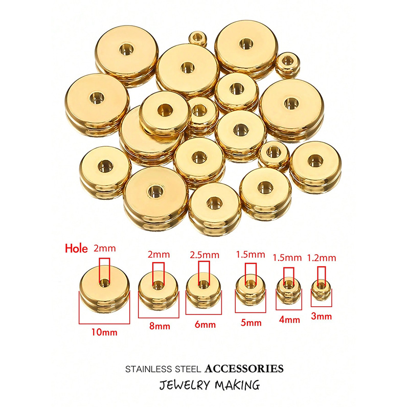 ステンレス鋼スペーサー、ラウンドディスク、ルースビーズ、編みロープブレスレット、ネックレススペーサー、ゴールド DIY ジュエリー