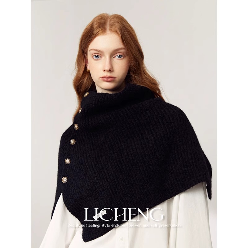 韩国东大门不规则开叉披肩外搭高领针织套头围脖百搭加厚斗篷围巾