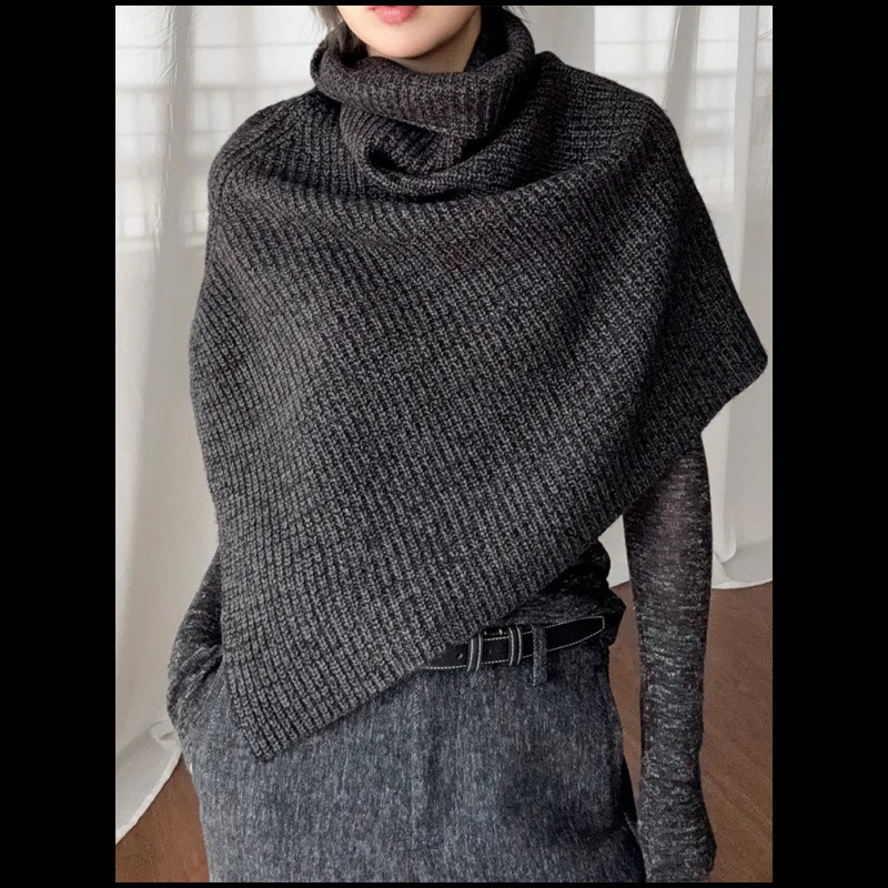 2025秋冬新作 純毛ハイネックニットショール 無地 暖かい 不規則デザイン マント レディース