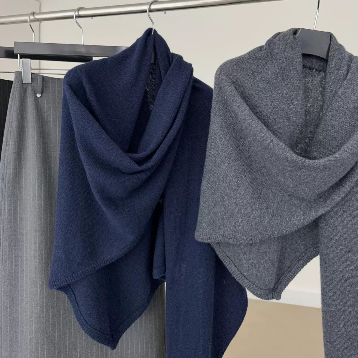 深灰色高领针织围巾女冬季高级感叠穿开叉套头脖套披肩斗篷围脖厚