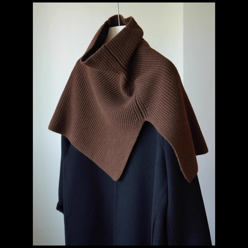 不规则咖色高领针织披肩围脖女冬季外搭高级感套头围巾保暖脖套