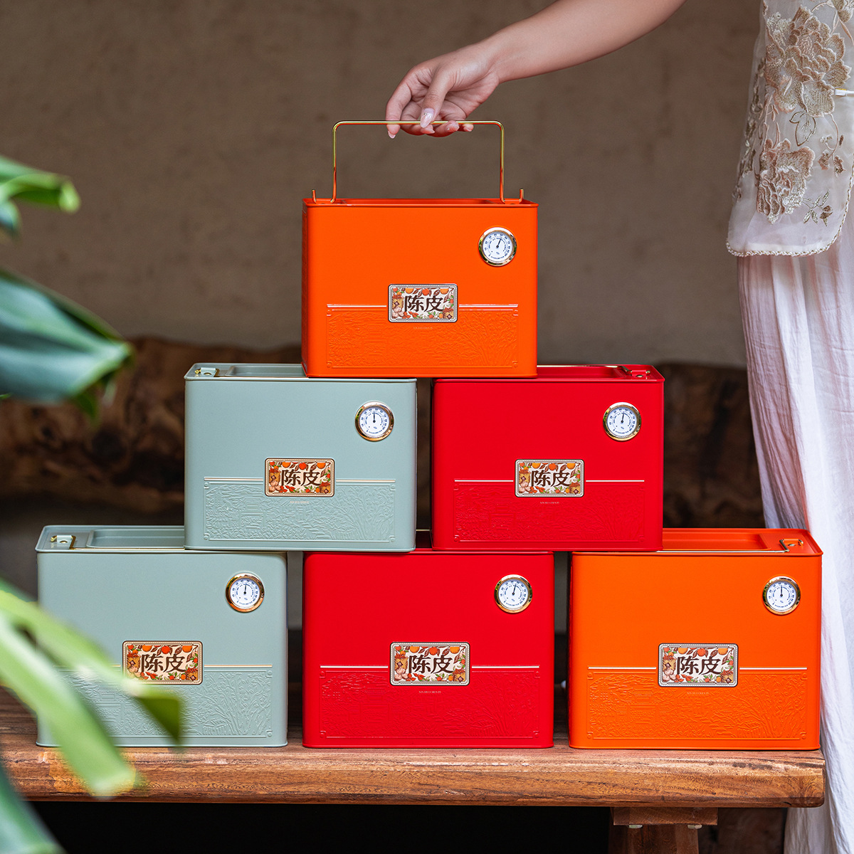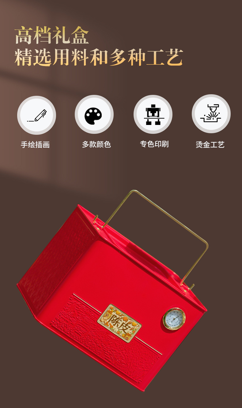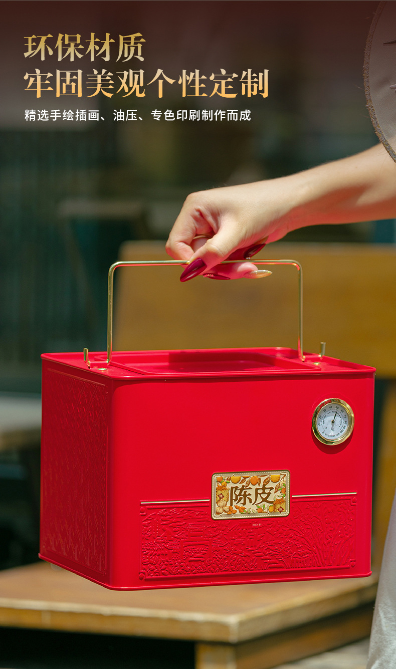 陈皮专用储存罐一斤装大容量防潮新会陈皮桶马口铁陈皮包装盒批发
