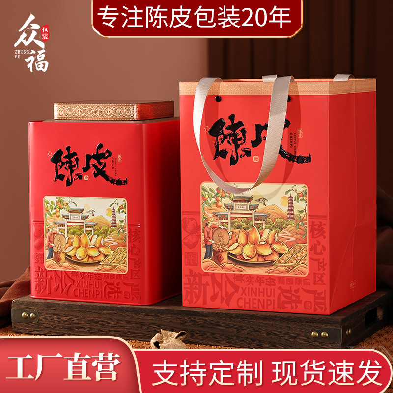 2025新型陳皮缶空鉄缶100グラム250グラム500グラム新会陳皮包装箱空箱卸売り