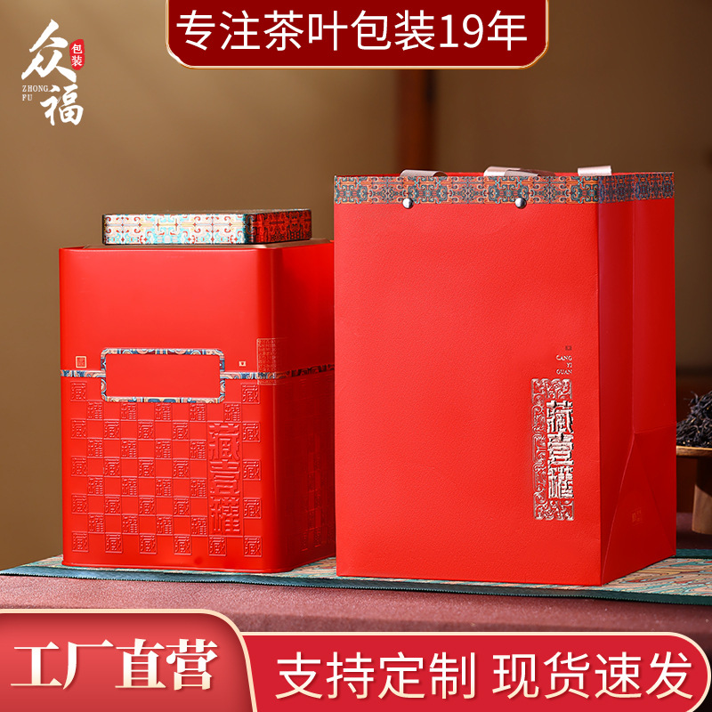 茶叶包装盒空盒金属铁罐空罐子手提大方桶500g陈皮储存罐带湿度表