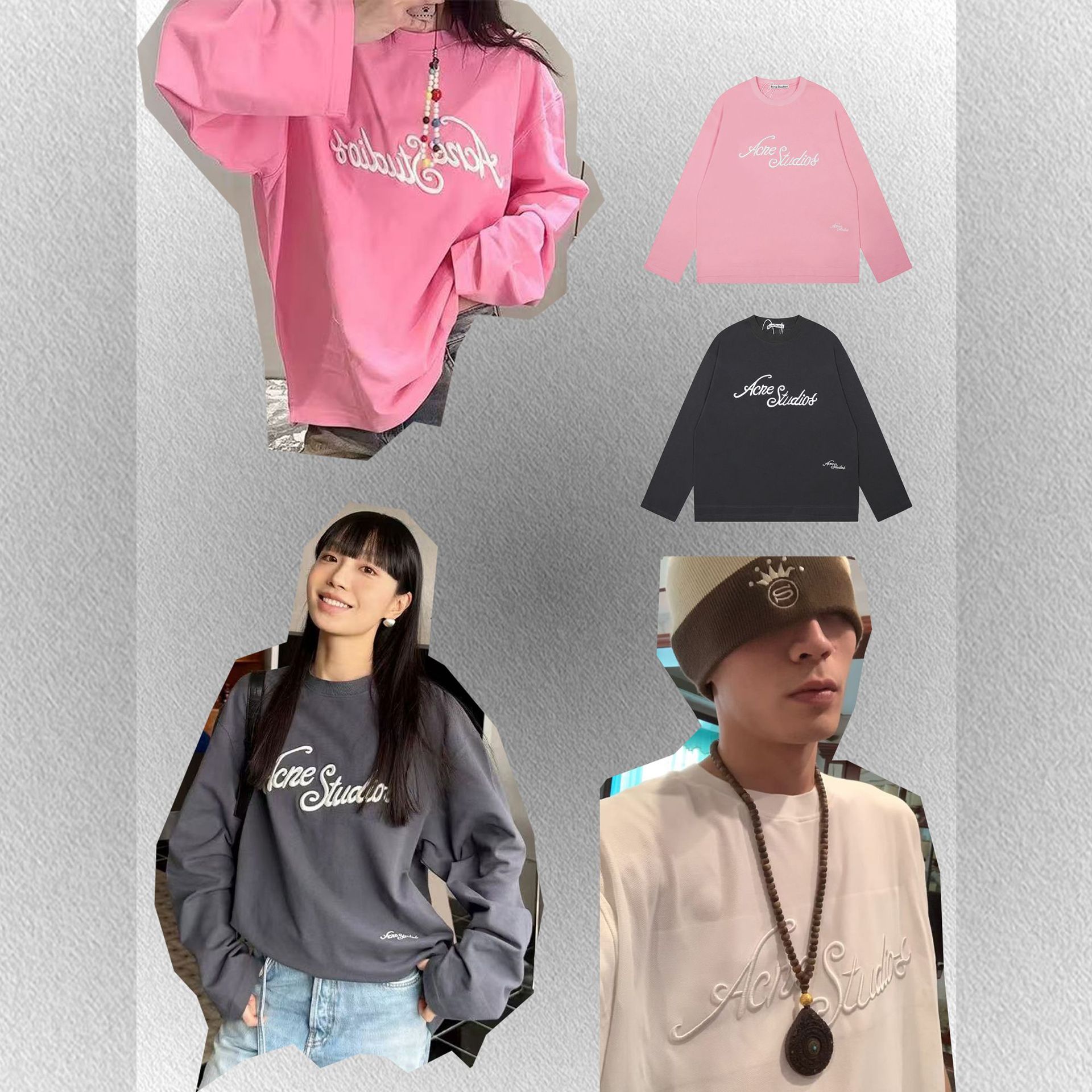 ACNE卫衣连帽25ss秋冬新款慵懒风假两件字母印花运动衫休闲长袖