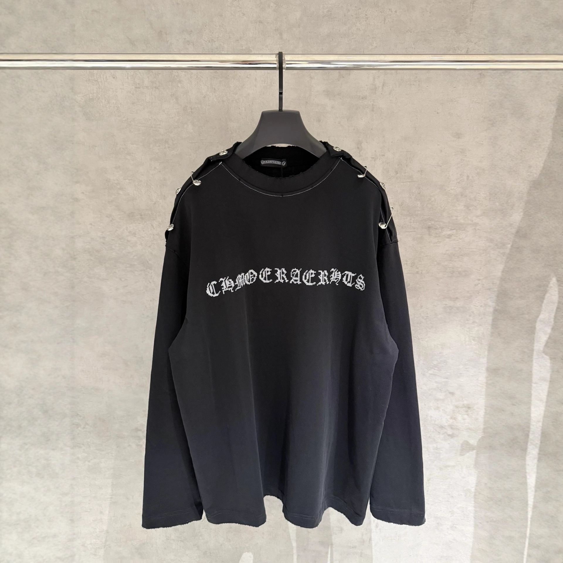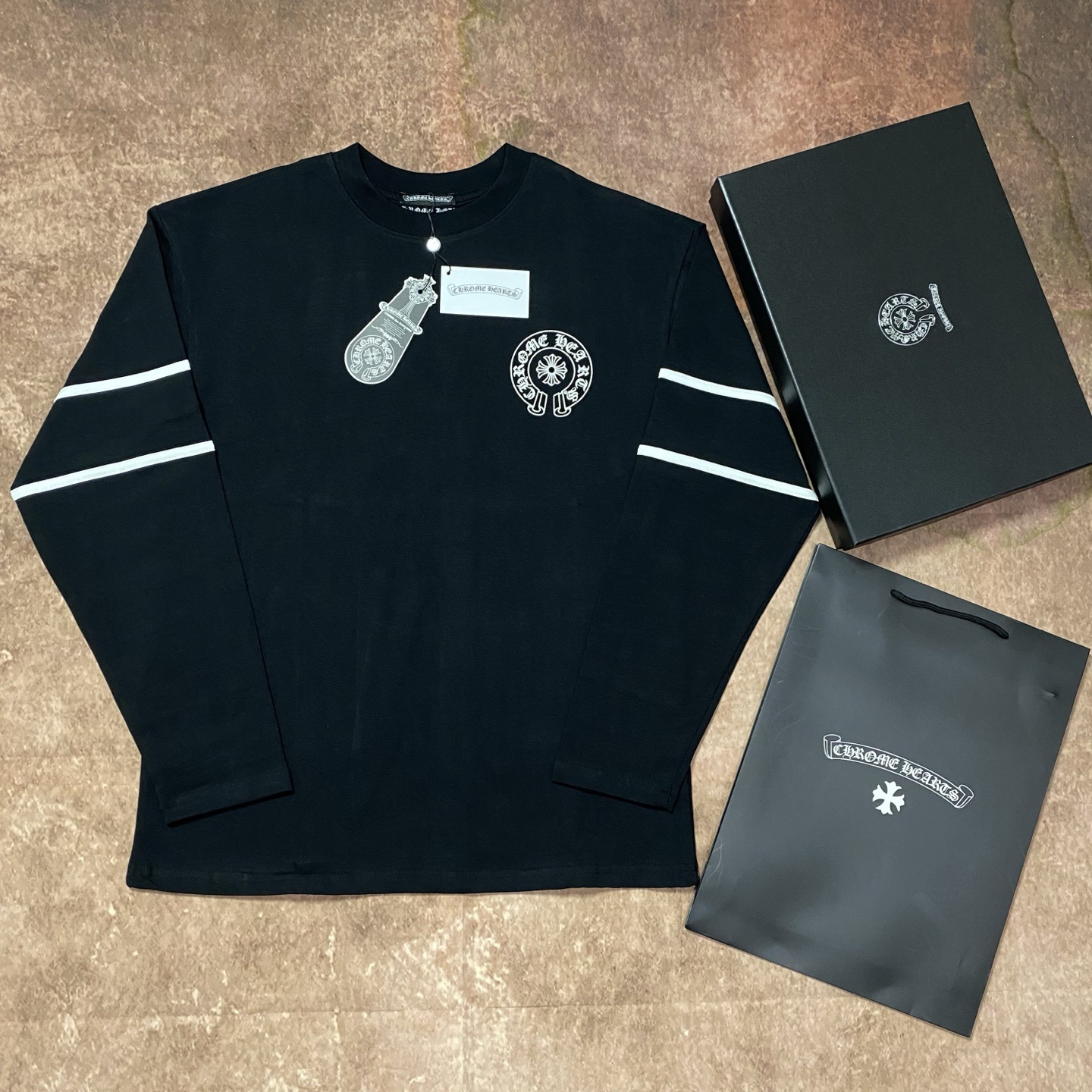 正确版CH克罗秋冬新款 十字架马蹄印花长袖T恤男女同款一件代发