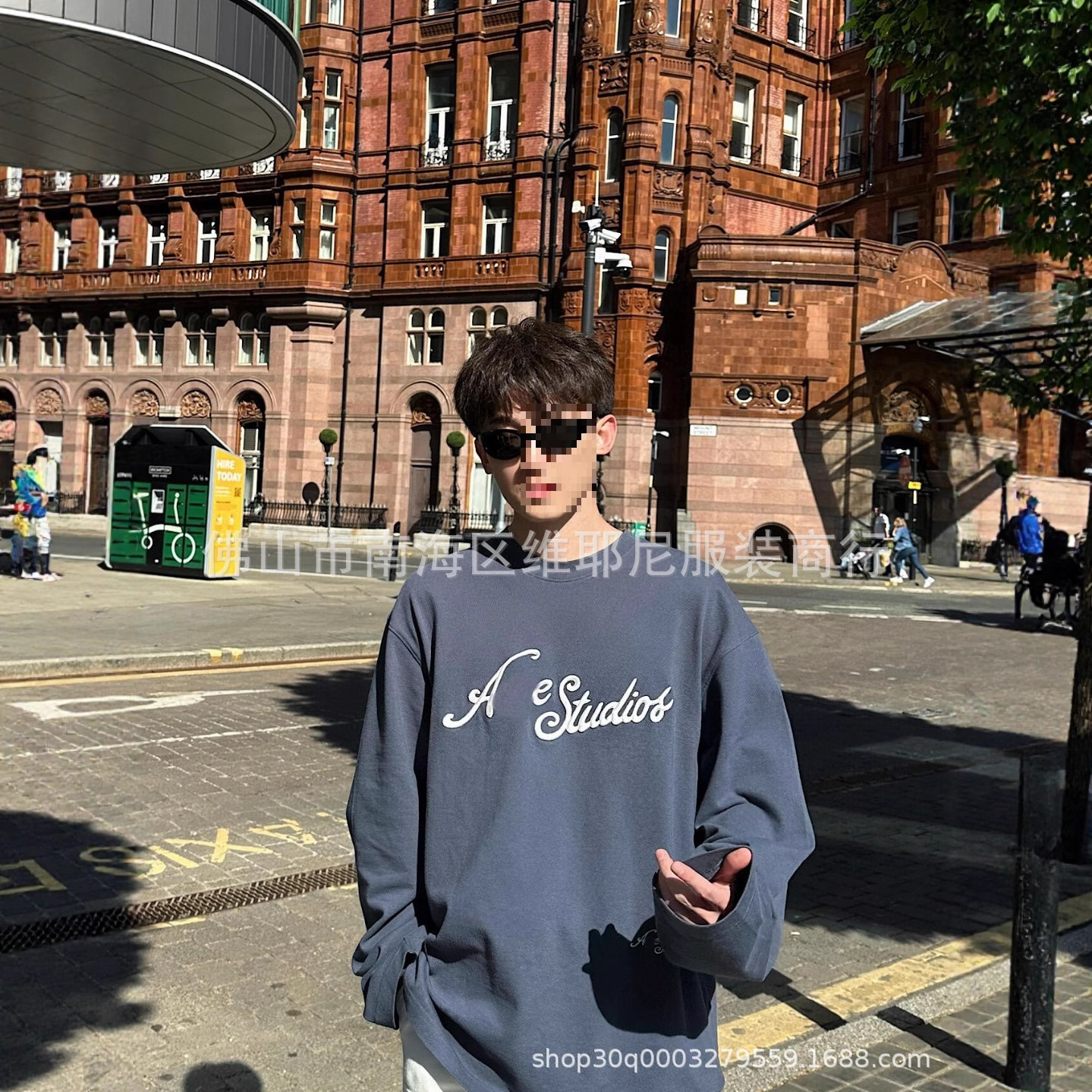 Acuo stndiso秋冬新款宽松简约微标3D立体刺绣logo长袖潮牌T恤