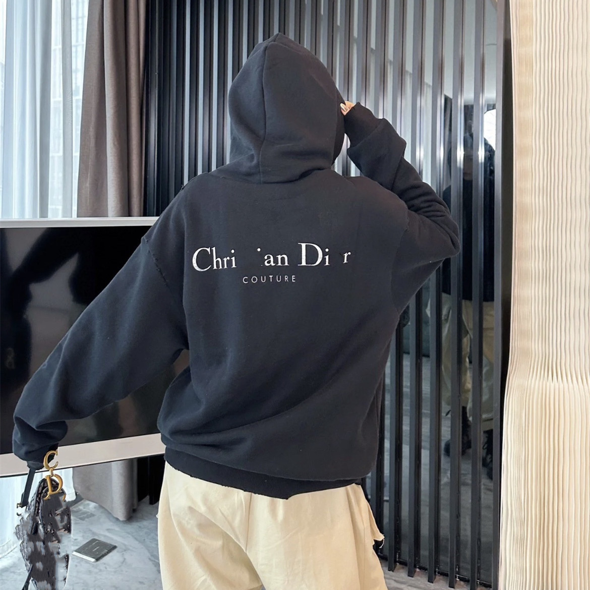 正确版本原标DI家经典款标识logo洗水磨破套头连帽卫衣男女帽衫