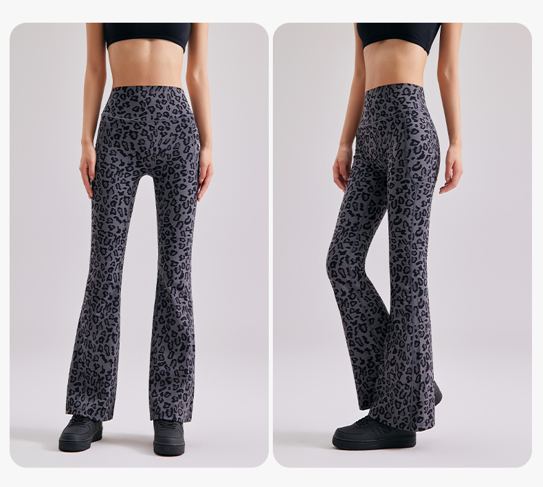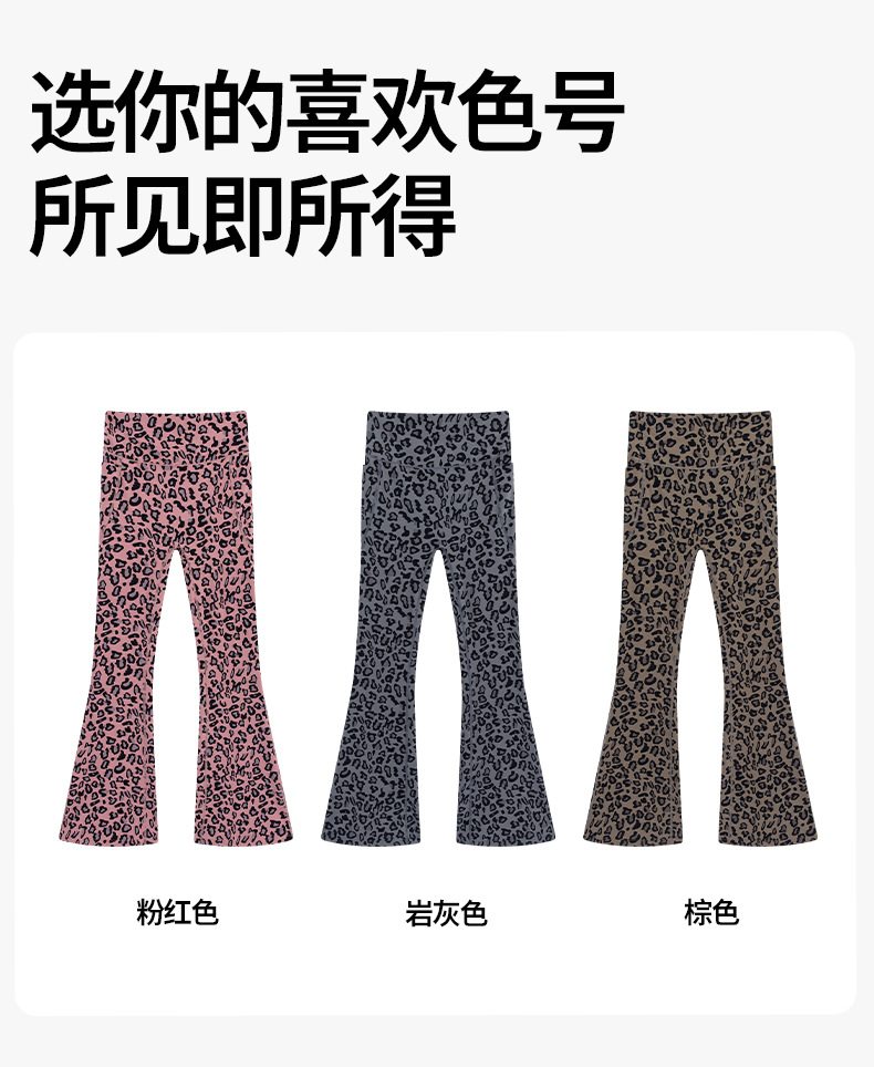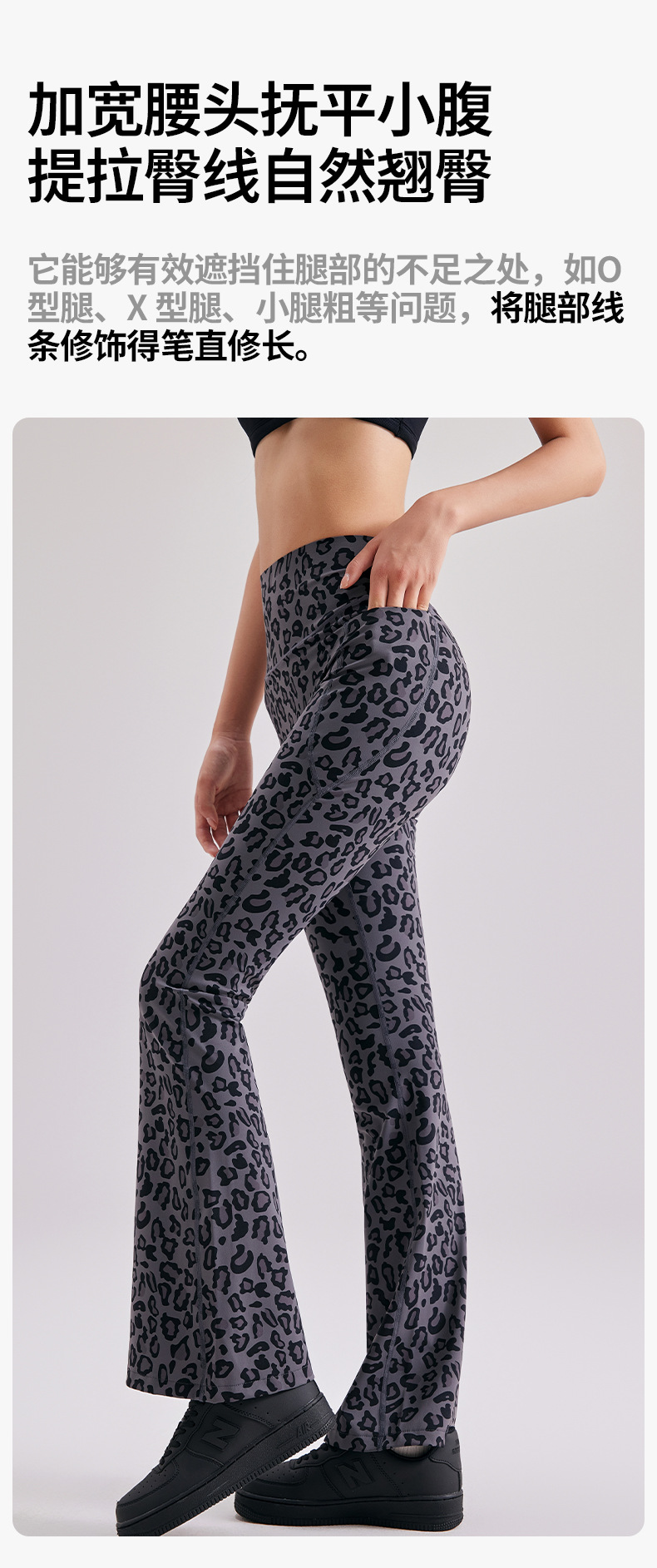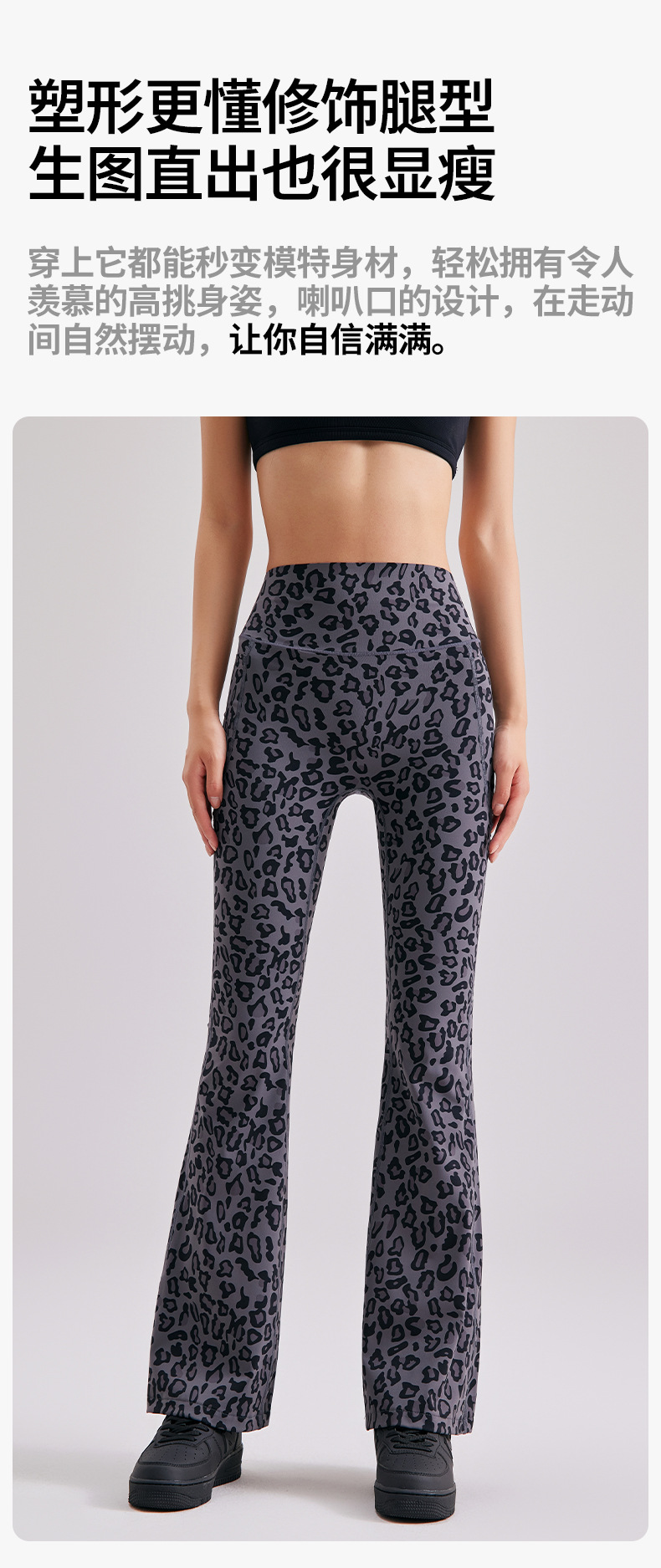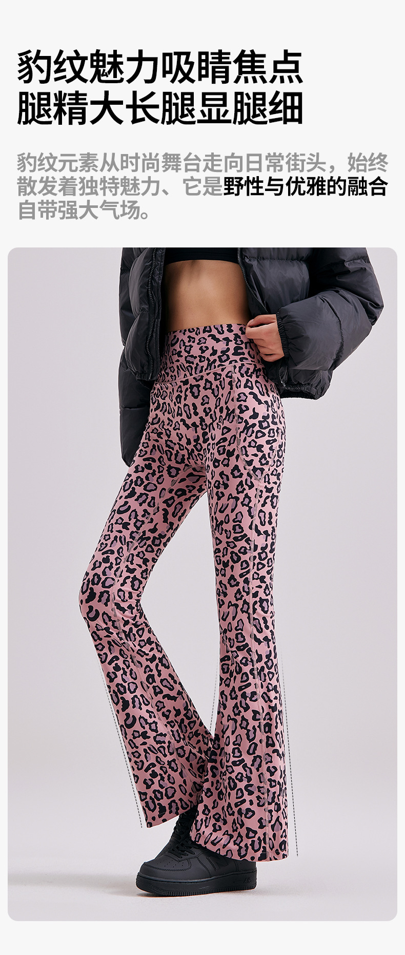 新款豹纹微喇裤女秋冬高腰弹力显瘦提臀裤欧美小个子垂感瑜伽裤