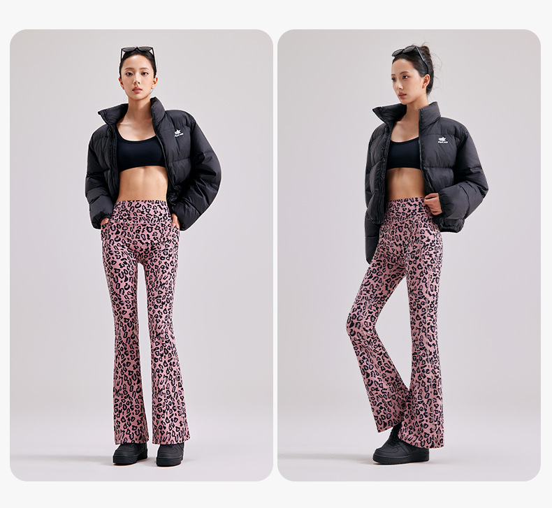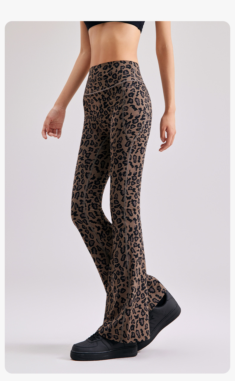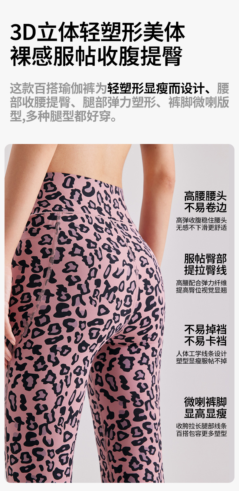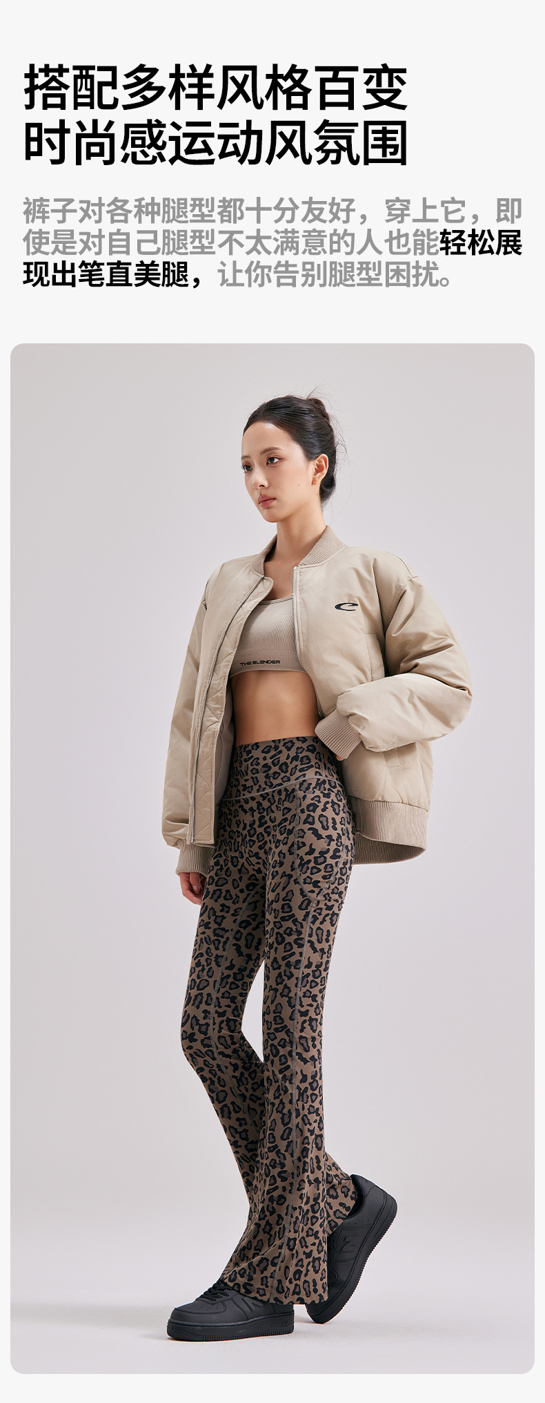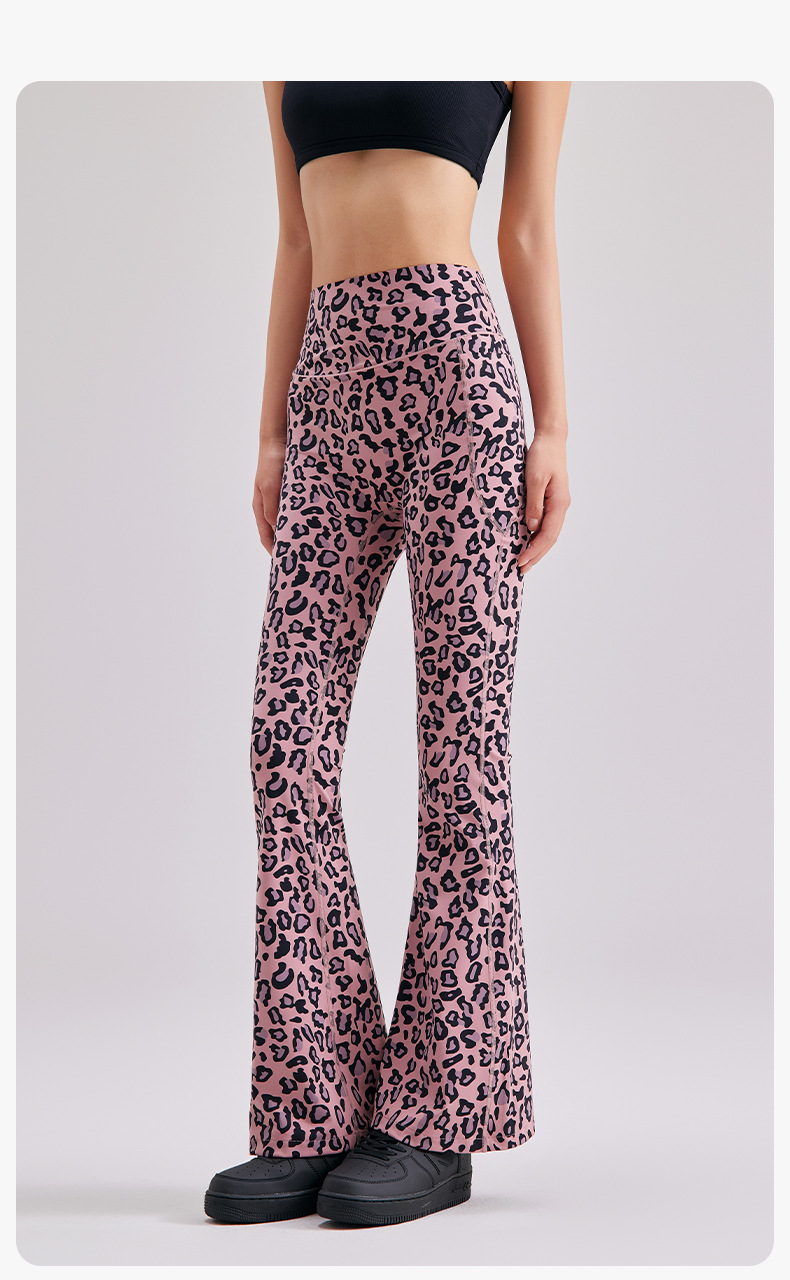 新款豹纹微喇裤女秋冬高腰弹力显瘦提臀裤欧美小个子垂感瑜伽裤
